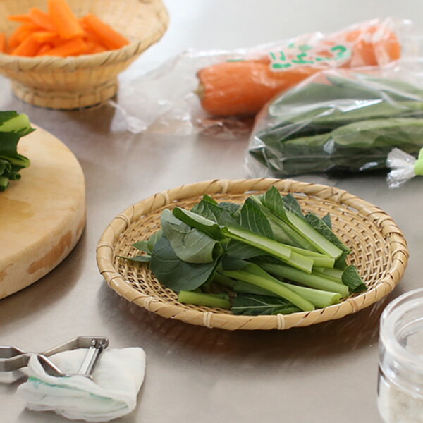◆製品仕様-Product Specifications- サイズ 約 Φ210×H15(mm) 重量 約 49g 素材 竹、籐 仕上げ 無塗装 メーカー 公長齋小菅 備考 箱は付属していないため、ラッピング不可となります。 ◆お手入れと使用上の注意-Caution- 使用後はやわらかいスポンジで中性洗剤で洗い、水気を拭いてから自然乾燥させてください タワシやクレンザーなどの研磨剤等の使用はお控えください 黒ずみやカビが目立つ場合はアルコール度数の高いエタノールや、薄めたハイターをタオルに浸み込ませ拭き取ってください 素材の性質上、繊維のささくれ・トゲが出ることがありますので、ご使用時はご注意ください 食器洗浄機、乾燥機は使用しないでください 熱湯、漬け置き洗いは反りや割れの原因なりますので避けてください 直火、電子レンジ、オーブンは使用しないでください ◆商品説明-Description of item- いろいろ便利に使える、昔ながらのそばざるです。 蕎麦を盛り付ければ、お蕎麦屋さんのような素敵な見た目の仕上がりに。氷でキリッと冷えた美味しい蕎麦をいただくことができます。天ぷらとざる蕎麦セットは暑い夏の日にぴったりのメニューに。焼きたてのパンやトースト、おにぎりを盛ったり、お鍋や焼肉の時に野菜の盛皿としてもお使いいただけます。 また、切った野菜を入れたり、水気を切ったりと使い勝手がよいざる。水気を切った野菜をそのまま食卓に出せます。 調理道具としても器としても使える蕎麦ざる。昔ながらの道具ですが、素敵な佇まいがささやかな喜びを感じさせてくれます。 ※箱の形状、色などは変更となる場合があります。 ※画像の色はブラウザや設定により、実物とは異なる場合があります。予めご了承下さい。■ 追加オプションをご希望の方へ 名入れ・照明加工・紙袋・有料のラッピングなどの追加オプションは、商品とは別途料金がかかります。 ご希望の追加オプションをカートに入れ、商品と一緒にご注文ください。 カートに入れずにご注文いただいた場合はオプション料金を店舗側にて追加させていただきます。 お支払い方法に前払いをお選びの場合は、楽天市場からの追加変更の案内をお待ちいただき、変更後の金額でお支払い下さい。
