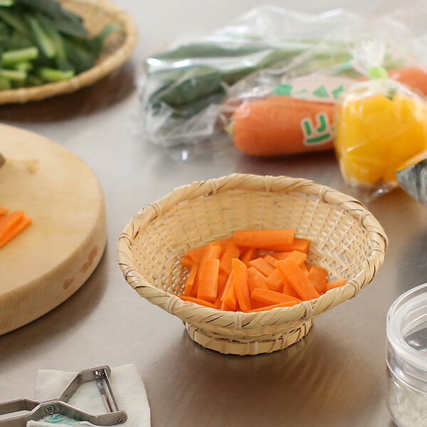 ◆製品仕様-Product Specifications- サイズ 約 Φ170×H65(mm) 重量 約 38g 素材 竹、籐 仕上げ 無塗装 メーカー 公長齋小菅 備考 箱は付属していないため、ラッピング不可となります。 ◆お手入れと使用上の注意-Caution- 使用後はやわらかいスポンジで中性洗剤で洗い、水気を拭いてから自然乾燥させてください タワシやクレンザーなどの研磨剤等の使用はお控えください 黒ずみやカビが目立つ場合はアルコール度数の高いエタノールや、薄めたハイターをタオルに浸み込ませ拭き取ってください 素材の性質上、繊維のささくれ・トゲが出ることがありますので、ご使用時はご注意ください 食器洗浄機、乾燥機は使用しないでください 熱湯、漬け置き洗いは反りや割れの原因なりますので避けてください 直火、電子レンジ、オーブンは使用しないでください ◆商品説明-Description of item- いろいろ便利に使える、昔ながらのそばざるです。 蕎麦を盛り付ければ、お蕎麦屋さんのような素敵な見た目の仕上がりに。溶けた氷の水分が底にたまらず、キリッと冷えた美味しい蕎麦をいただくことができます。焼きたてのパンやトースト、スコーンやクッキーを入れたり、お鍋や焼肉の時に野菜の盛皿としてもお使いいただけます。 また、切った野菜を入れたり、水気を切ったりと使い勝手がよいざる。水気を切った野菜をそのまま食卓に出せます。 調理道具としても器としても使える蕎麦ざる。昔ながらの道具ですが、素敵な佇まいがささやかな喜びを感じさせてくれます。 ※箱の形状、色などは変更となる場合があります。 ※画像の色はブラウザや設定により、実物とは異なる場合があります。予めご了承下さい。■ 追加オプションをご希望の方へ 名入れ・照明加工・紙袋・有料のラッピングなどの追加オプションは、商品とは別途料金がかかります。 ご希望の追加オプションをカートに入れ、商品と一緒にご注文ください。 カートに入れずにご注文いただいた場合はオプション料金を店舗側にて追加させていただきます。 お支払い方法に前払いをお選びの場合は、楽天市場からの追加変更の案内をお待ちいただき、変更後の金額でお支払い下さい。