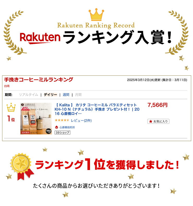 【 Kalita 】 カリタ コーヒーミル バラエティセット KH-10 N(ナチュラル)手挽き プレゼント付! | 2016 心斎橋ロイヤル(ROYAL BLEND) 各100g | コーヒー豆 深煎り 中深煎り ブレンド コロンビア COFFEE 心斎橋焙煎所