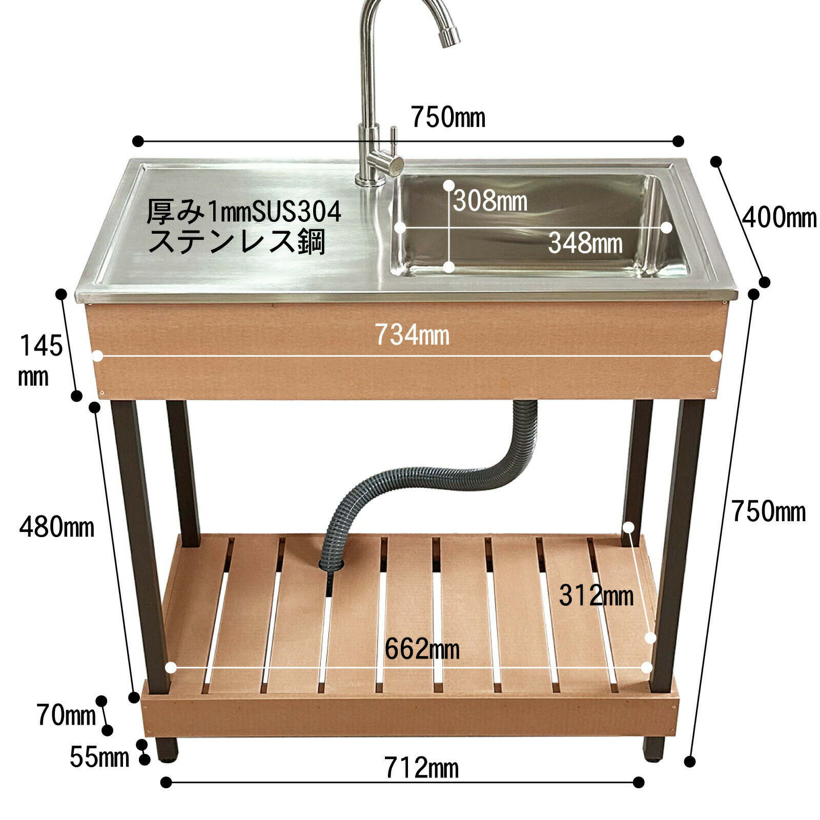 樹脂製 流し台 ライトブラウン 幅75奥行40高75cm ガーデンシンク 7540 SUS304 ステンレス製シンク 収納 棚 人工木流し台 人工木製 ガーデニング ガーデンファニチャー おしゃれ 立水栓 庭水栓 ガーデニング 庭水道 軽量 散水工具 散水