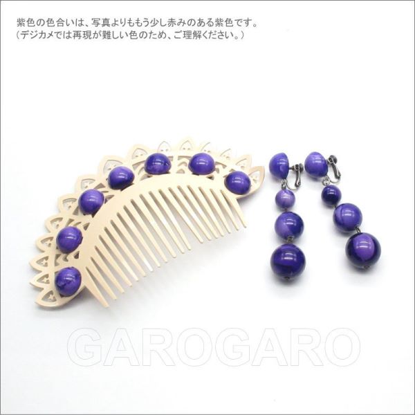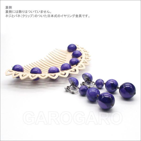 [セット価格][針なし] アイボリー×マーブルビーズのペイネタとイヤリングのセット(AY-55) ライラック(クリップ&ねじの日本式留め具) [フラメンコ用][スペイン直輸入]
