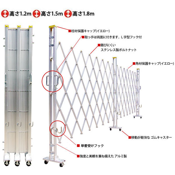 【ポイント10倍】アルミゲート 伸縮門扉 両開き 高さ 1.8 m × 幅 14.4 m 18AYW-144-36 | 仮設ゲート クロスゲート アルミフェンス フェンス アコーディオンゲート 蛇腹ゲート 右開き 左開き