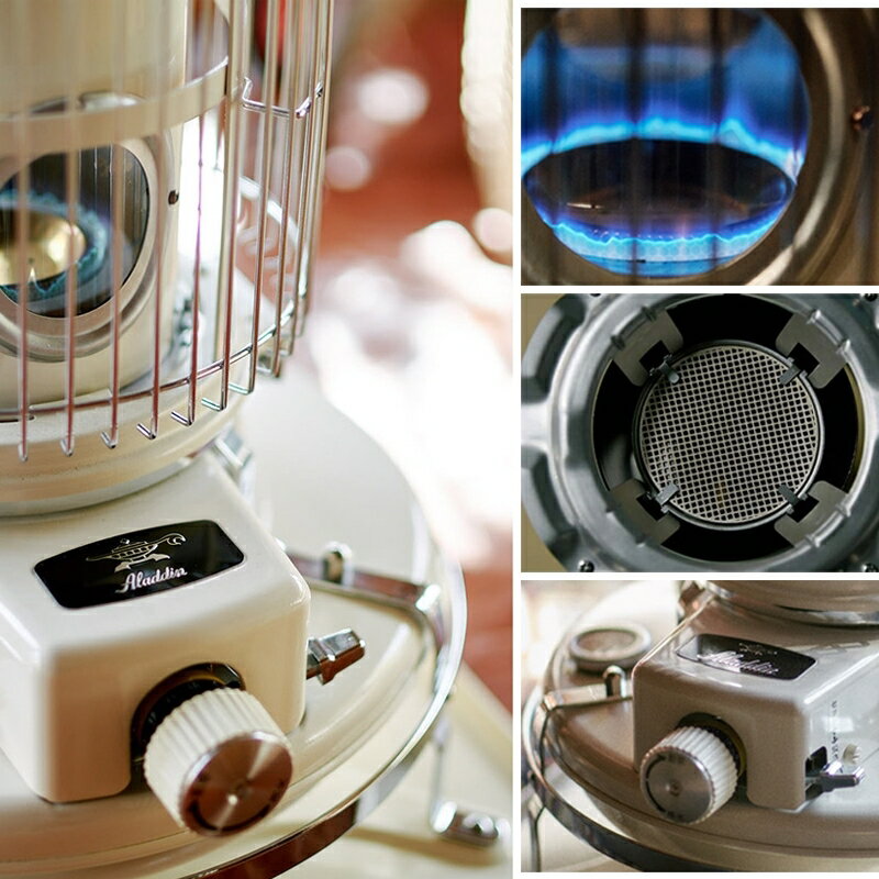 12月1日(月)24時間限定ワンダフルデーエントリーでポイント3倍に!更に最大2,000円OFFクーポン発行中必ずエントリー&対象クーポンを取得してご購入お願い致します! 当店限定クーポン 【商品説明】80余年もの間、少しずつ改良を加えながらも、基本的なモデルチェンジのない完成されたフォルムと性能。愛され続ける永遠のスタンダード「ブルーフレームヒーター」。青い炎でやわらかな暖かさ「ブルーフレーム」の美しい青い炎はムラなく気化された灯油が充分な酸素を供給され、良い燃焼状態である証拠です。酸素が充分に供給されていないと黄色い炎になるため、炎の色により燃焼状態を把握する事が出来ます。さらに対流式なので暖められた空気がお部屋をくまなく、ふんわりと包み込み、気になる風や音もありません。酸素が充分に供給されていないと黄色い炎になるため、炎の色により燃焼状態を把握する事が出来ます。 美しく燃える青い炎と心地よい暖かさによる「癒しの空間」を満喫して下さい。レトロでコンパクトなデザイン「ブルーフレーム」はどこか昔懐かしい親しみのあるデザインで、和室や洋室など、どこに置いても違和感を感じさせません。一見、存在感のある「ブルーフレーム」ですが、実はとてもコンパクトなため、お部屋の邪魔になることもなく、素敵なお部屋作りには欠かせない存在です。インテリアの一つとして、「ブルーフレーム」でオシャレなお部屋を演出してみては。ニオイを抑えた心地よさ燃焼中はもちろん、点火・消火の際もいやなにおいを感じさせません。そのわけは点火時と同時にブルーの炎で燃焼する為、未燃焼ガス(におい)の発生が起こりにくく、同じように、燃焼時のしんおよび、その周辺の温度が低いので、消火時間が短く、未燃焼ガス(におい)が発生しにくくなっているからです。対震自動消火装置「ブルーフレーム」の対震自動消火装置は、セットレバーとしんを上げるだけでセットされるしん降下式。これは内蔵の感震器が敏感に所定の地震動をキャッチするシステムで、消火は瞬時に行われます。この装置は震度5のほぼ中間で作動するように設定。(JIS(日本工業規格)により)急な地震の際でも安心してご利用頂けます。※但し、石油機器の受ける震度により、その数値は多少変動します。排ガス浄化触媒一酸化炭素や、臭いの基となる炭化水素を低減します。【商品スペック】本体サイズ:H551×W388×D405mm本体重量:8.5kg種類:しん式・自然通気形 自然対流形暖房出力:2.68kW暖房の目安:木造 7畳(11.5m) コンクリート::10畳(16.5m)タンク容量:4.1L燃焼持続時間:15時間使用燃料:灯油 (JIS1号灯油)燃料消費量:0.26〜/h日本製■■ アラジン ( Alladin )一覧はこちら