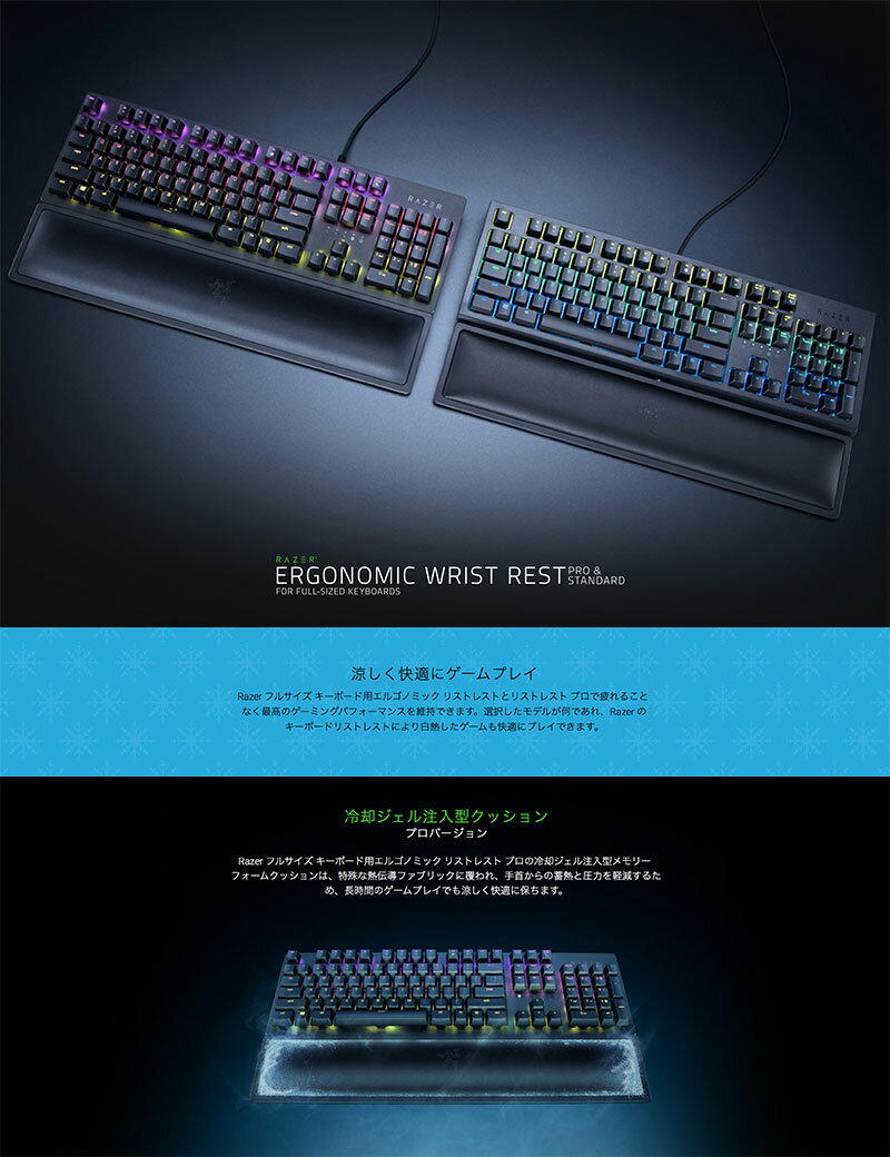 【Razer公式】 Razer Ergonomic Wrist Rest Pro フルサイズキーボード用 冷却ジェル注入型クッション # RC21-01470100-R3M1 レーザー (リストレスト)