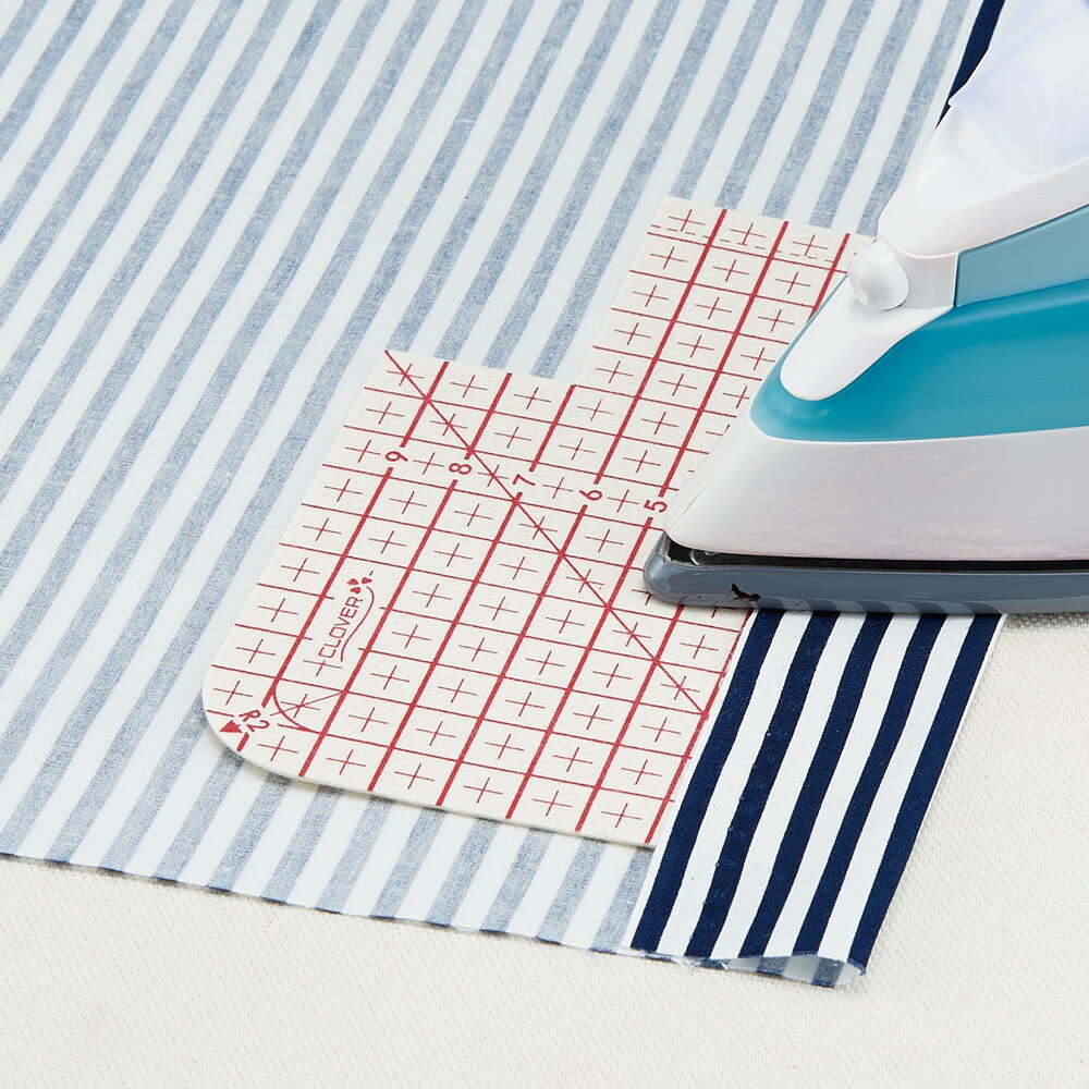 折り返しのできる幅が広いため、様々な作品に対応。 しるし付けに便利なカット部や、ポケットの丸みの形状作りに便利な角丸付き。 布がズレにくく、スチームに強い仕様。 【使用例】 しるし付け、長い直線や曲線の折り上げ(シャツやズボン、スカートの裾上げなど)、ポケットなどの丸みに対応。