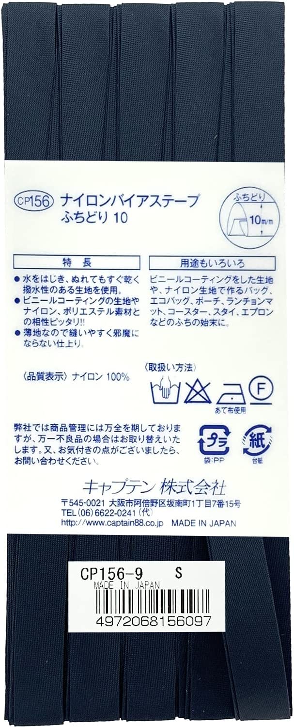 ナイロンバイアステープ CP156 バイアステープ バイヤス バイアス キャプテン CAPTAIN ナイロン 撥水 ふちどり 10mm幅
