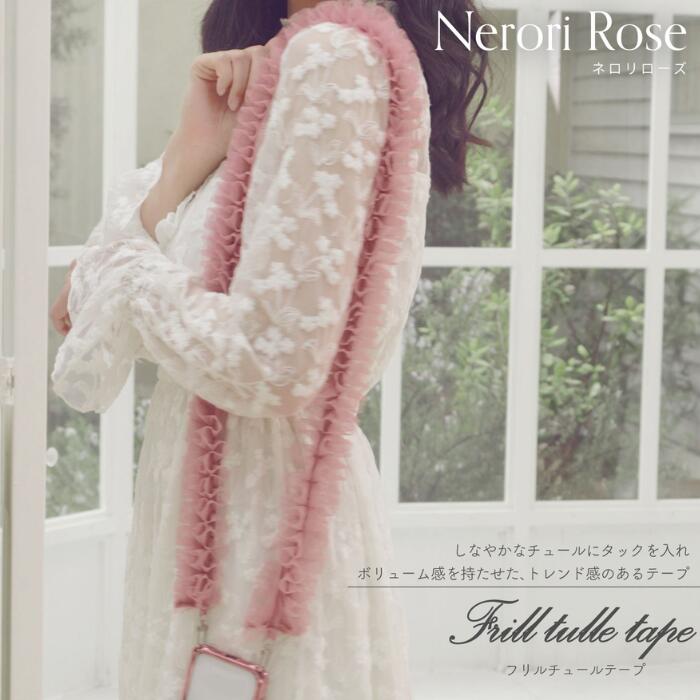 Nerori Rose フリルチュールテープ 50mm幅 1.3m NR-03 ネロリローズ 清原 KIYOHARA フリル テープ コード チュール バッグ ハンドメイド 手芸 肩掛け スマホショルダー ポーチ ストラップ 装飾