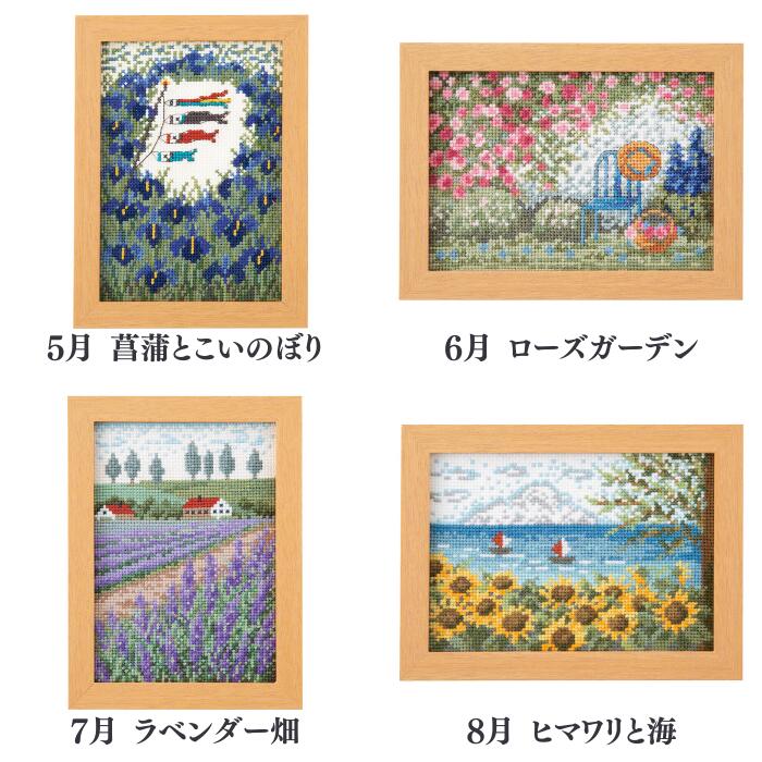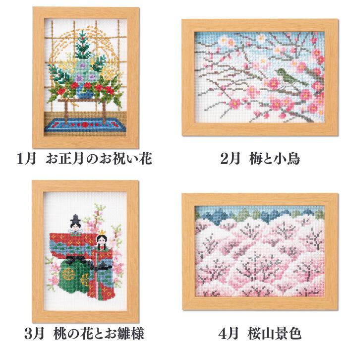 季節に合わせて変わりゆく情景を刺しゅうに閉じ込めました。 季節の節目のお祝いや、その時期ならではの情景に想いを馳せながら、ゆっくり針を動かしていけば・・・美しい季節の風景が額いっぱいに広がります! 壁掛け・スタンド兼用できる専用の額付。 初級者〜中級者向け 出来上がり寸法 額外径:約20cm×15cm 額内径:約16.6cm×11.6cm キット内容 ・25番刺しゅう糸 ・No.8300布 インディアンクロス ・クロス針 ・カラー図案付説明書 ・木製フレーム 目数 13カウント/1インチ・約52目/10cm 額 木製フレーム付 7541 1月 お正月のお祝い花 7542 2月 梅と小鳥 7543 3月 桃の花とお雛様 7544 4月 桜山景色 7545 5月 菖蒲とこいのぼり 7546 6月 ローズガーデン 7547 7月 ラベンダー畑 7548 8月 ヒマワリと海 7553 9月 お月見の花飾り 7554 10月 コスモスの咲く風景 7555 11月 秋色の散歩道 7556 12月 クリスマスイルミネーションの街注目のアイテム刺しゅうキット ノスタルジックストーリー 第1弾 7...4,200円(税込)刺しゅうキット ノスタルジックストーリー 第2弾 7...4,200円(税込)刺しゅうキット ノスタルジックストーリー 第3弾 7...4,200円(税込)ART GALLERY 世界の名画 ミニフレームコレ...3,880円(税込)アートギャラリー 世界の名画 クロスステッチキット ...5,380円(税込)12ヶ月の小さな花風景 マリー・カトリーヌコレクショ...2,680円(税込)