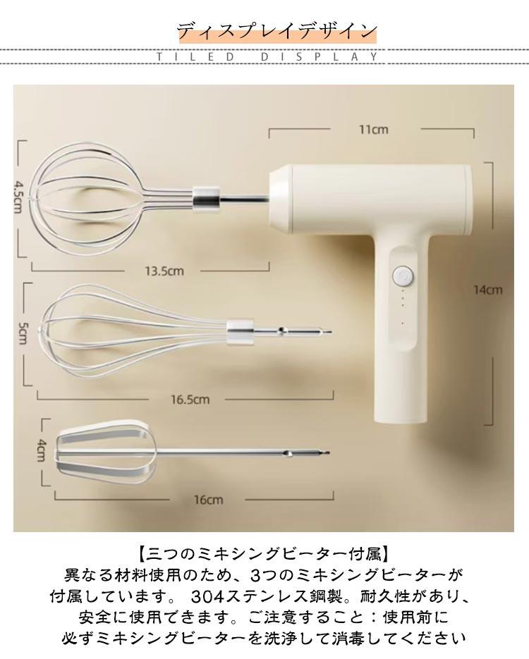ハンドミキサー ホイッパー 電動 泡立て器 コンパクト 3段階スピード調節 キッチン用 強力 充電式 コードレス 速い 軽い クリーム ホイップ ミキサー 誕生日 お菓子作り ケーキ