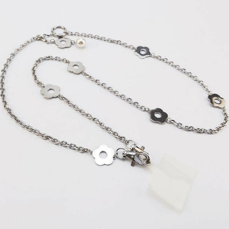 ショルダー パール お花 スマホチェーン スマホ用ストラップホルダー付き スマホストラップ イベント メタル チェーンストラップ 肩掛け オフィス 通勤 斜め掛け