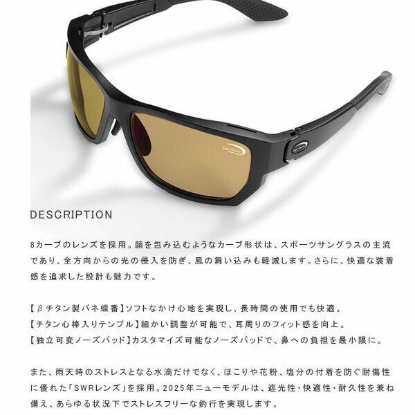 サイトマスターのサングラスをもっと釣りに活用していただく為のプレゼント企画! サイトマスターのサングラス購入者様全員にバッグやベストなど、 どこでも取り付け可能な当店オリジナルタクティカル眼鏡ケースをプレゼント。 おすすめポイント ・サングラスをいつでもどこでも取り出せる。 ・セミハードケースで衝撃に強い。 ・ライニング(内側)はウレタンシートを配置し保護力を高めています。 ・500デニールの耐久性抜群のファブリック。 ご注文の際に眼鏡ケースカラーをお選びください。 ----------------------------------------------------------オクトマットブラック ラスターオレンジ(SWR)シリーズ最大級の視界の広さに8カーブの遮光性と防風性 8カーブのレンズを採用。顔を包み込むようなカーブ形状は、スポーツサングラスの主流であり、全方向からの光の侵入を防ぎ、風の舞い込みも軽減します。さらに、快適な装着感を追求した設計も魅力です。【βチタン製バネ蝶番】ソフトなかけ心地を実現し、長時間の使用でも快適。【チタン心棒入りテンプル】細かい調整が可能で、耳周りのフィット感を向上。【独立可変ノーズパッド】カスタマイズ可能なノーズパッドで、鼻への負担を最小限に。また、雨天時のストレスとなる水滴だけでなく、ほこりや花粉、塩分の付着を防ぐ耐傷性に優れた「SWRレンズ」を採用。2025年ニューモデルは、遮光性・快適性・耐久性を兼ね備え、あらゆる状況下でストレスフリーな釣行を実現します。 ■SPECブリッジ幅×レンズ横幅×レンズ縦幅×フレーム幅(mm)18×53×34×148mm8カーブケース、クリーニングクロス付属 ※写真の色と実際の商品の色は多少異なる場合がございます。 ※商品画像はメーカー提供のサンプル画像です。 製品仕様・デザインは改良のため予告なく変更される場合がありますのでご了承ください。 この商品のお支払いはキャッシュレス決済(クレジット決済・ポイント支払い)のみです。 ・キャッシュレス決済(クレジット決済・ポイント支払い)以外をお選び頂いた場合、注文後の変更が出来ないため、ご注文のキャンセル処理をいたします。 ※ご注文後のお客様都合によるキャンセルや変更は承っておりませんので、ご確認の上ご注文をお願いいたします。 正規品 未使用新品 当店のブランド商品は全て本物です。安心してショッピングをお楽しみください。
