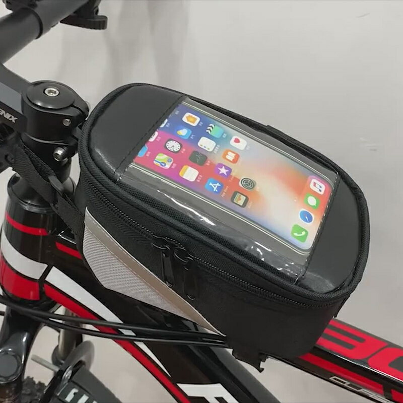 送料無料 トップチューブバッグ スマホホルダー 自転車 収納 イヤホン穴付き 画面操作可能 面ファスナー 反射 ロード マウンテン バイク スマートフォン 携帯電話 サイクリング