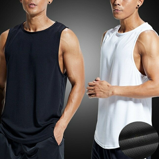 送料無料 タンクトップ メンズ 男性 紳士 大きいサイズ トップス インナー 下着 ノースリーブ 袖なし 無地 黒 白 グレー 単色 メッシュ シンプル 通気性 夏服 トレーニング フィットネス