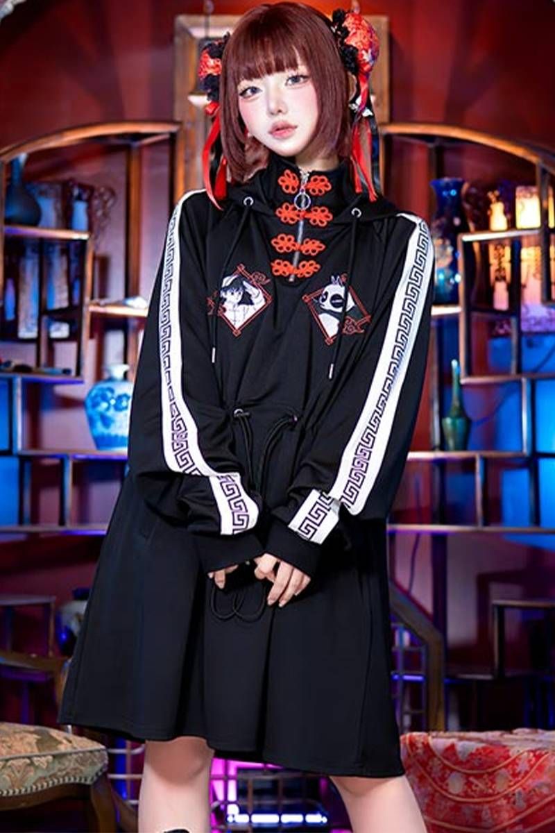 らんま1/2×LISTEN FLAVOR (リッスン・フレーバー) 乱馬と玄馬(パンダ)のチャイナジャージワンピ - Black