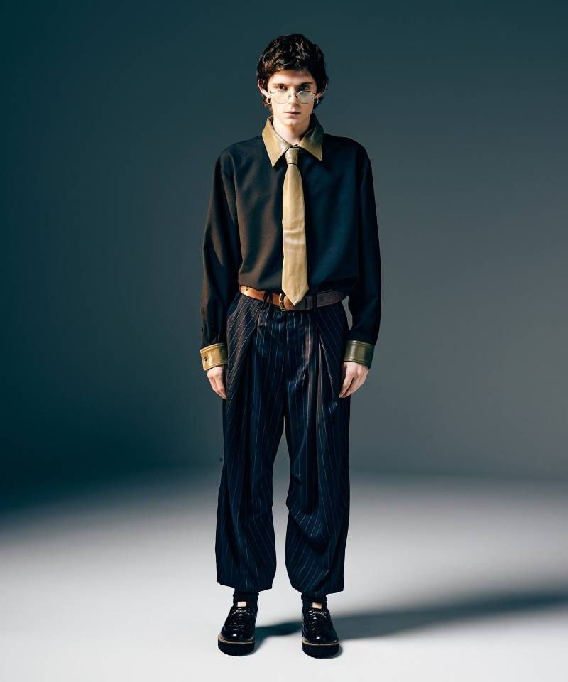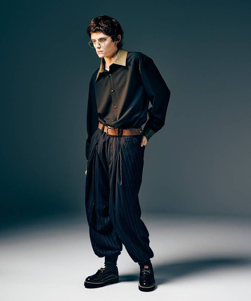 「grunge for luxury」をコンセプトに掲げ、グランジ・ロックを基調にした世界観で人気のブランドglamb(グラム)より2025 Winter Collectionが数量限定で新入荷! 立体的なシルエットメイキングを多層的に落とし込み、ブランド独自のモードを提案するTuck in Tuck Pants。腰元に現れるドレープはウエストの1タックの中にさらに1タックを加え、膝位置にも内から外へ向かうタックを設けるという丹念なパターンワークによるもの。その重なりと生地のピンストライプが相まってジオメトリックな視覚効果を演出します。さらにエッジを際立たせるべく裾にリブを配してテーパードラインを強調。秋冬の着用を想定した裏地付きの仕立てでお届けします。 こちら数量限定につき、ご注文はお早めに! サイズウエスト 股上 股下 腿周り 裾周り ヒップ S78.5336687.523149 M83.5346890.524154 L88.5357093.525159