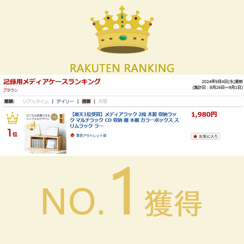 【楽天1位受賞】メディアラック 2段 木製 収納ラック マルチラック CD 収納 棚 本棚 カラーボックス スリムラック ライトブラウン おすすめ EZ2-FCD060LBR