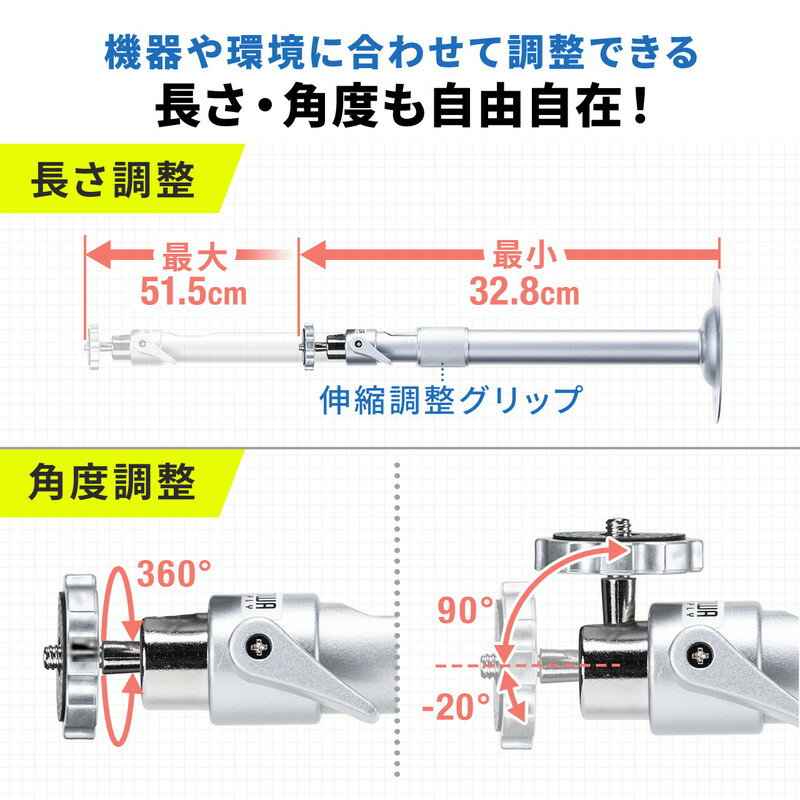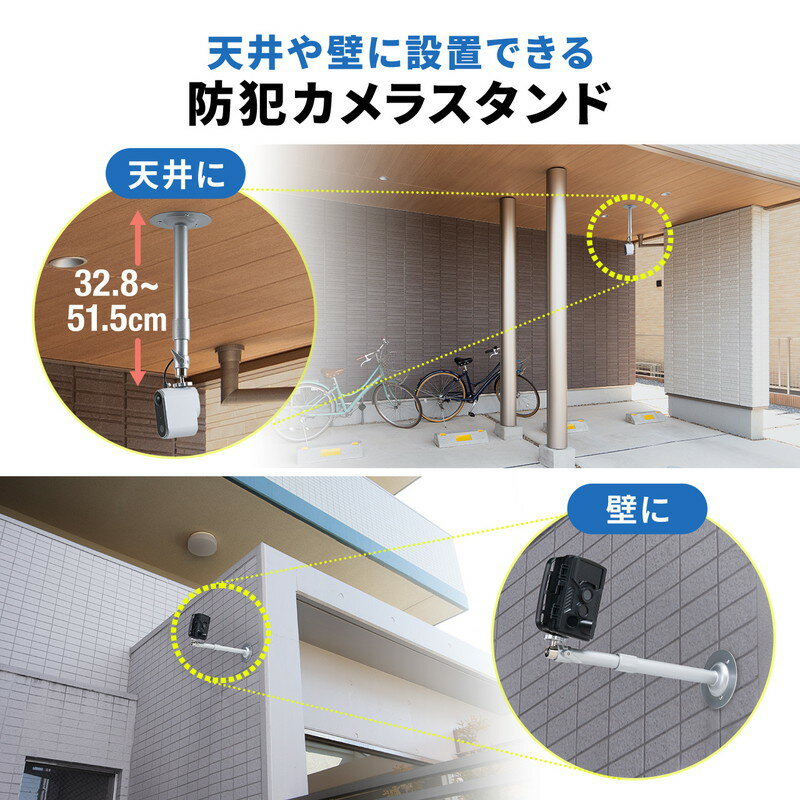 防犯カメラスタンド 天吊り 壁 長さ伸縮 32.8〜51.5cm ストレート カメラ用ブラケット カメラマウント 壁面固定 天井取付 EZ2-BKT006
