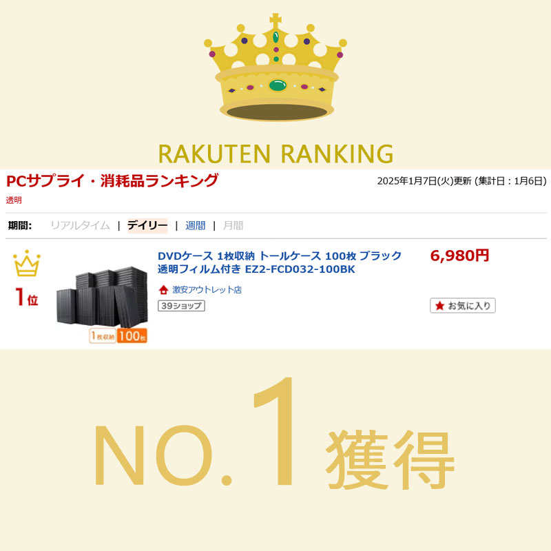【楽天1位受賞】DVDケース 1枚収納 トールケース 100枚 ブラック 透明フィルム付き EZ2-FCD032-100BK