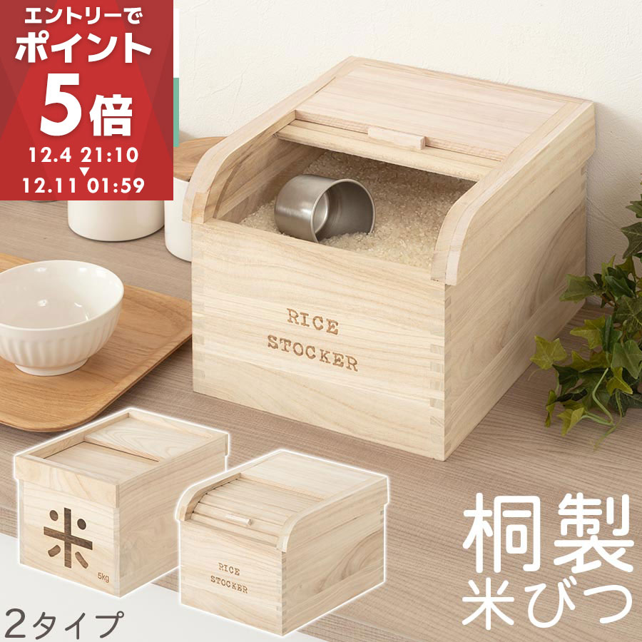 米びつ 5kg おしゃれ 桐 木製 ライスストッカー ライスボックス 米櫃 お米入れ 軽量 こめ 収納 5キロ 収納ケース 害虫 虫除け お米 保存容器 ストッカー お米ストッカー 米入れ キッチン用品 米 保存 ケース こめびつ 送料無料 KCBUB3200