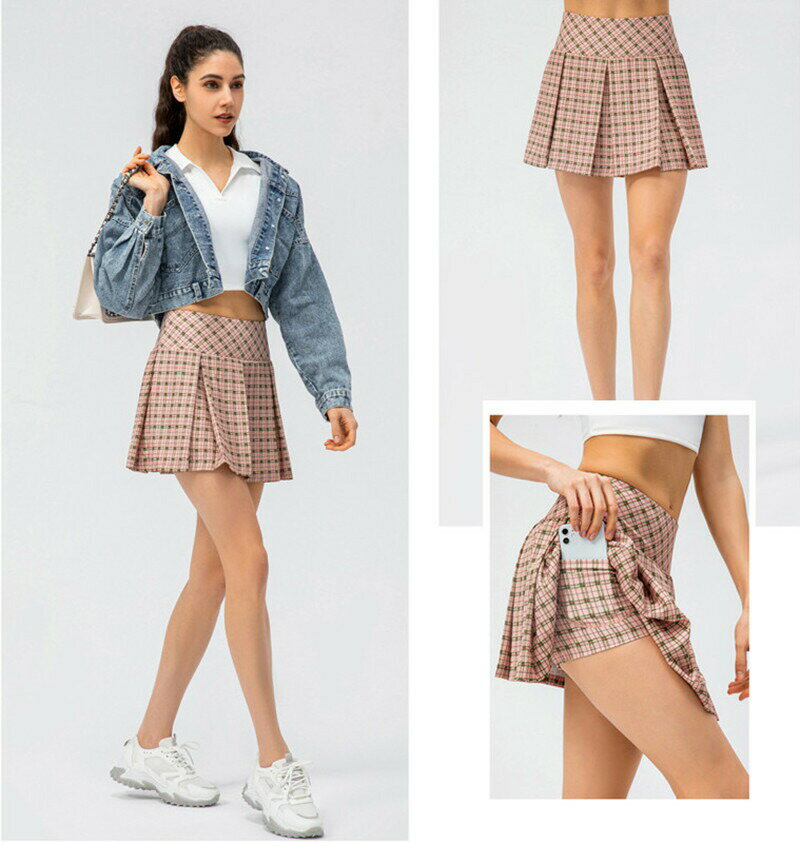ゴルフスカート ポケット付き スコート レディース ミニ プリーツスカート チェック柄 テニススカート テニスウェア オシャレ スポーツスカート 運動着 ペチパンツ付き