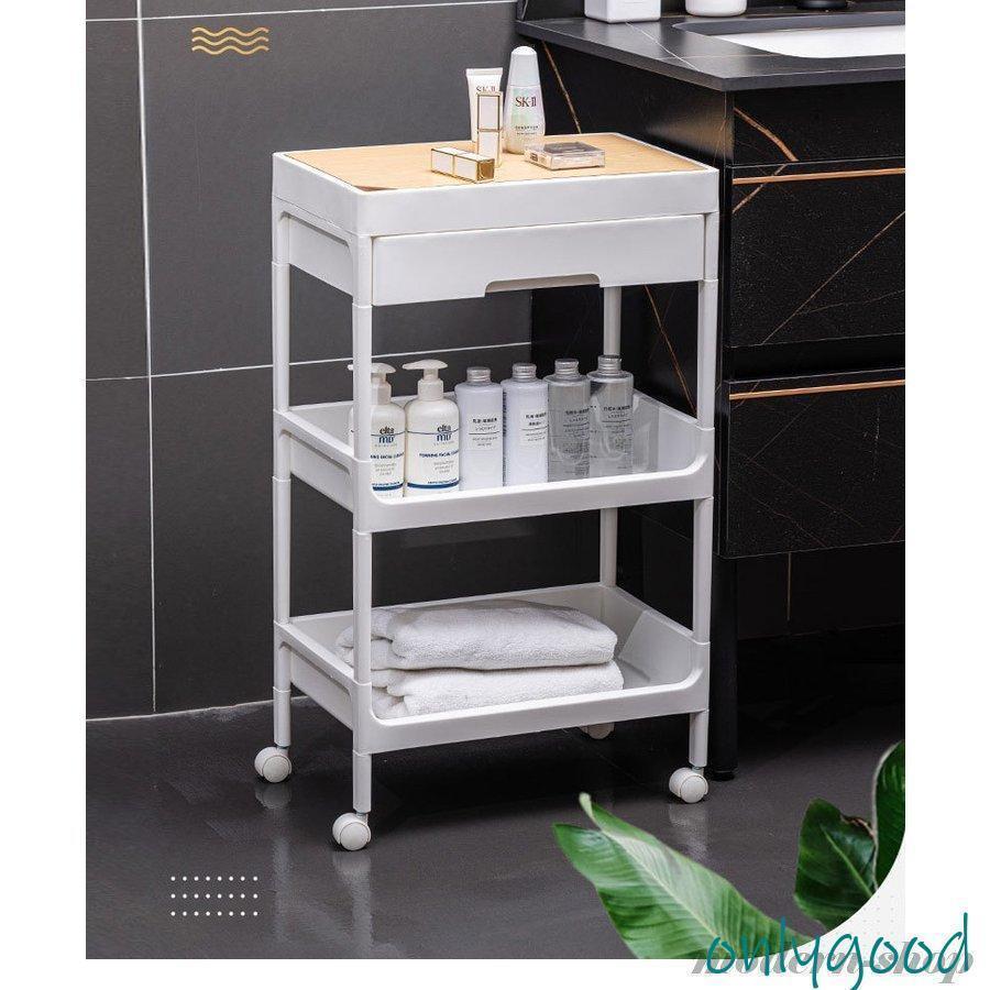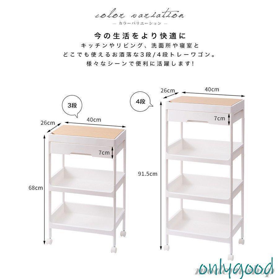 キッチンワゴン 3段 4段 木天板 サージュワゴン キッチン収納 キッチンラック キャスター付き 引き出し サイドテーブル オープンラック ワゴン