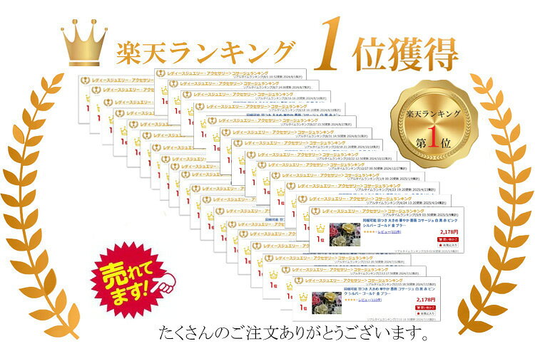 ★対象のスーツ・ドレス・ワンピースと同時購入で、特別セット価格半額にてお買い求めいただけます! ※楽天からの注文受付自動メールはコサージュ代金を半額修正されておりません。 ご注文受付後にコサージュ代金を半額に修正をさせていただきます。 当店からのご注文受付メールで金額をご確認ください。 ※割引クーポンをご利用になった場合は、セット価格半額への変更は出来ませんのでご了承ください。 月洸うさぎオススメのゴージャスでお得なコサージュ 通常のコサージュの2〜3倍の大きさで存在感・ボリュームがあり価値があるコサージュです。 使いやすさと華やかさを兼ね備えてます1番人気のオフ再入荷しました。 色はホワイト(3-1)、オフ(3-2)、コーラル(3-3)、ピンク(3-4)、レッド(3-5)、シルバー(3-6)、ブラウン(3-7)、ゴールド(3-8)、アリスブルー(3-9)、ブラック(3-10)の10色。 大きめ華やかなローズに葉と羽をモチーフしたデザインです。 裏面は安全ピンとヘアクリップ付きの2Way。 薔薇の直径は約10cm、厚みは約5cmです。 結婚式・二次会・卒園卒業式・入園入学式などに大活躍のアイテムです。 透明クリアケースに入れて発送いたします。 他の商品との同梱発送も承ります。 運送中にクリアケースに多少のへこみが生じる場合いもございます。 型崩れ防止のためメール便でのお届けはできません。 製造上、多少の染めムラや大きさが若干異なる場合があります。 ボンドなどの汚れがある場合があります。 コサージュケースは縦横15cm×高さ5cmです。 大きめコサージュのため、押さえられていることもあるかもしれませんが、その場合はお客様自身で形を整えてください。 ※対象外の商品と同時購入の場合は適用されません。 ※スーツ・ドレス・コサージュをご注文時に割引クーポンをご利用になった場合は半額割引の対象外となりますのでご了承ください。 ※半額割引は、1回のご注文につき1個までとさせていただきます。 月洸うさぎは、女の子スーツから20代・30代・40代・50代以上の幅広い年代の女性を対象としたレディースファッション店です。二次会 パーティ 謝恩会 披露宴 結婚 結婚式 立食 ドレス お呼ばれ 成人式 フォーマル 冠婚 お祝い セレモニー 万能 着回し 大切な 大切な記念日 魅力的 パンツ ワンピース お呼ばれ 二次会ドレス パーティドレス 謝恩会ドレス 披露宴ドレス 結婚ドレス 結婚式ドレス 立食会ドレス ドレス お呼ばれドレス 成人式ドレス フォーマルドレス 冠婚ドレス お祝いドレス セレモニードレス 万能ドレス 着回しドレス 大切なドレス 大切な記念日ドレス 魅力的ドレス パンツドレス ワンピースドレス お呼ばれドレス 小さいドレス 小さいサイズドレス 大きいサイズ ドレスサイズ 小さいサイズ 大きいサイズ まで新作 新品 服装 衣装を激安低価格で販売しています。新作ドレス 新品ドレス 服装 衣装ドレス を激安低価格ドレス 即日ドレス スーツドレス 発送/翌日ドレス ドレススーツ スーツ必着ドレス 即納ドレス 早いドレス スーツドレス 速いドレス 安心ドレス 丁寧ドレス 安いドレス 急ぎドレス 対応ドレス、極力 即日ドレス 発送、当日発送ドレス、迅速発送ドレス げっこううさぎドレス ゲッコウウサギドレス gekkouusagiドレスドレス即納 ドレス早い ドレススーツ速い 安心 丁寧 安い急ぎ対応、 即日発送、当日発送、迅速発送を心がけています。げっこううさぎ ゲッコウウサギ gekkouusagi色とりどりの10色1番人気のオフ3-2が再入荷しました。 ホワイト(3-1) オフ(3-2) コーラル(3-3) ピンク(3-4) レッド(3-5) シルバー(3-6) ブラウン(3-7) ゴールド(3-8) アリスブルー(3-9) ブラック(3-10) 裏面は安全ピンとクリップ
