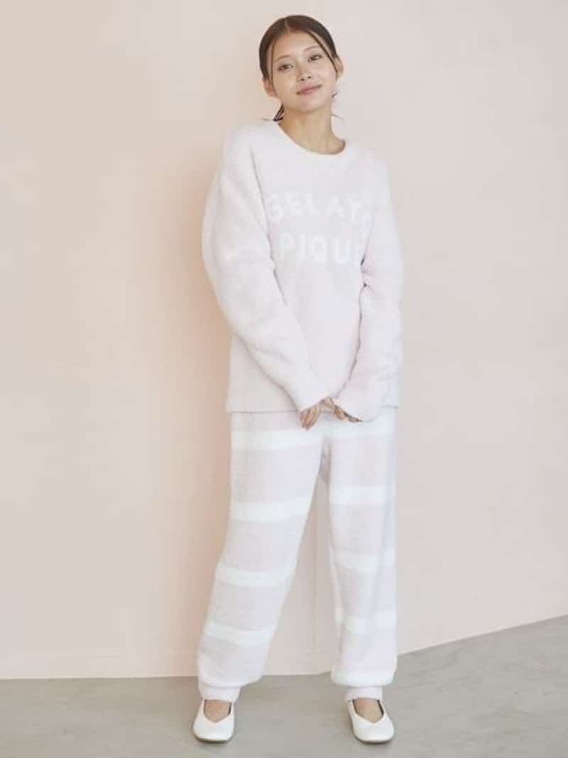 【予約商品について】 ※「先行予約販売中」「予約販売中」をご注文の際は予約商品についてをご確認ください。■重要なお知らせ※ 当店では、ギフト配送サービス及びラッピングサービスを行っておりません。ラッピング・ギフト配送について同時に複数の商品を注文された場合メーカー希望小売価格について置き配についてご利用ガイドgelato pique(ジェラートピケ)パウダーロゴジャガードプルオーバー&ロングパンツセット直営店舗:12/26(金)発売予定【寒い季節にうれしい厚め生地のパウダーセットアップ】【Fabric】POWDER(パウダー)…ふわふわもこもこの感触はそのままに、さらりとした肌当たりの、パウダリーなもこもこ素材。【Design/Styling】やや厚手の’パウダー’素材を使った、冬にぴったりの柔らかなカラーリングのセットアップ。プルオーバーにはキャッチーなロゴジャガードを、ボトムには細めの2色ボーダーをデザインしました。裾を絞ったシルエットで、おやすみ中もめくれにくく快適。カラーはピンク、ミント、ラベンダー、アイボリーの4色展開。HOMMEサイズとのペアコーディネートや、大切な方へのギフトにもおすすめです。※こちらの商品はクリスマス以降のお届け予定となります。※こちらの商品はラッピングサービス、セルフラッピング、eギフトサービスは対象外となります。あらかじめご了承ください。※照明の関係により、実際よりも色味が違って見える場合があります。またパソコン・スマートフォンなどの環境により、若干製品と画像のカラーが異なる場合もございます。予めご了承ください。商品の色味は、商品単品画像をご参照下さい。 ※商品画像はサンプルのため、色味やサイズ等の仕様に変更がある場合がございますので、予めご了承ください。【サイズ備考】[ボトム]ウエスト:68ー114cmヒップ:105cm股上:30cm股下:68cmわたり幅:31cm裾幅:13cm型番:PWNT255051-L1-3U QT4384【採寸】サイズ着丈バスト袖丈肩幅前下がり裾幅F59.5cm104cm53cm50cm9.5cm48cm商品のサイズについて【商品詳細】中国素材:トップス:ポリエステル97%,ナイロン2%,ポリウレタン1%/パンツ:ポリエステル97%,ナイロン2%,ポリウレタン1%サイズ:F[99]※画面上と実物では多少色具合が異なって見える場合もございます。ご了承ください。商品のカラーについてこの商品は先行予約商品のため返品・交換対象外です詳細はこちら >>