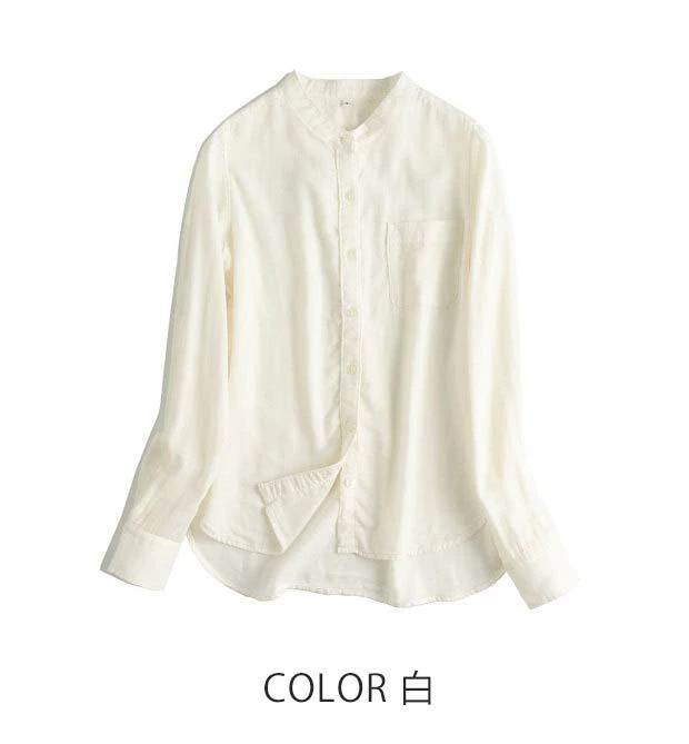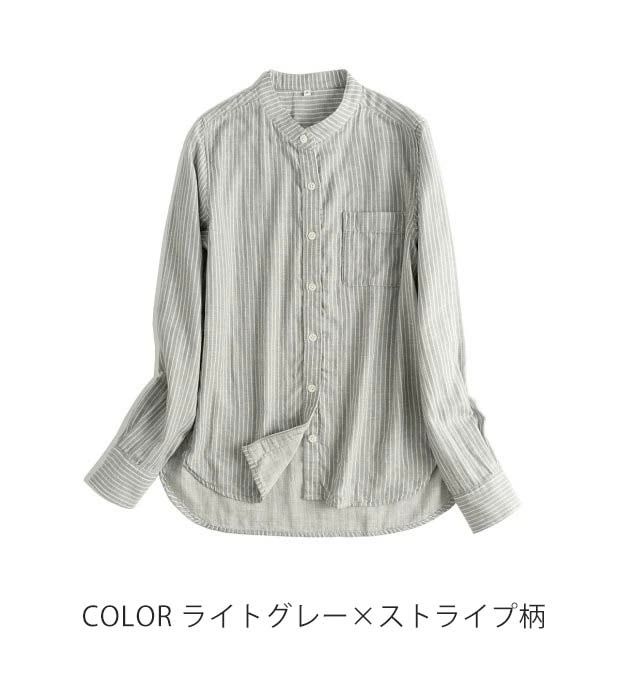コットン100% シャツ ブラウス レディース 長袖 ダブルガーゼ バンドカラー シャツブラウス ガーゼシャツ トップス 秋 綿 無地 ストライプ柄 大きいサイズ 柔軟 通勤 秋 冬 春 シンプル 上品 着回し ガーゼコットン 柔らかい OL オフィス 仕事 フォーマル 定番 送料無料