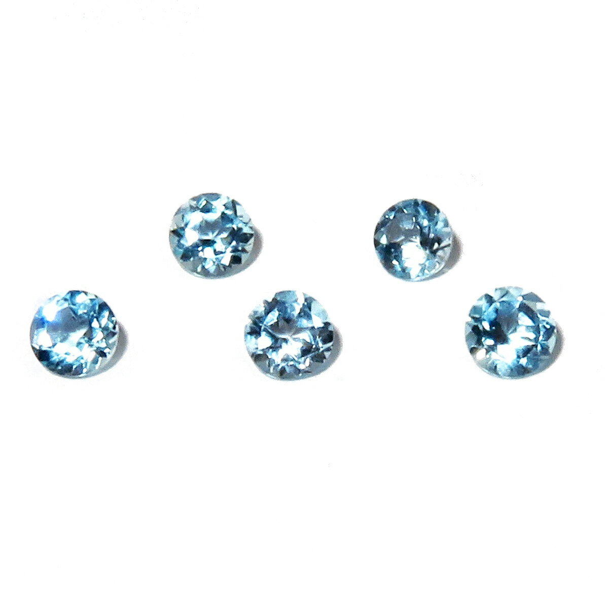 商品情報素材天然ブルートパーズ(Fタイプ 照射処理)サイズ5 x 5 x 3mmラウンドファセットカット0.6ct注意寸法、重量に若干の個体差があります。モニターの発色、周囲の環境などで若干色味が異なって見える場合がございます。GemKana/ジェムカナ/スカイブルートパーズ/天然・照射処理/5mmラウンドファセットカット すっきりとした青色の宝石 産出量の多い一般的な宝石である天然トパーズのルースストーンです。透明度が高く、すっきりとした外見です。トパーズ(Fタイプ)は屈折率が1.61~1.62程度とあまり高くなく、より高い屈折率の宝石に比べるとシンプルな印象になります。モース硬度は8と良好ですが、特定の方向に割れる性質があるため、強い衝撃には注意が必要です。しかし、伝統的に宝石として使用されていることが示すように、一般的なお取り扱いではそれほどの問題にはなりません。ブルートパーズには通常、照射処理が行われています。リーズナブルで透き通った宝石です。 10