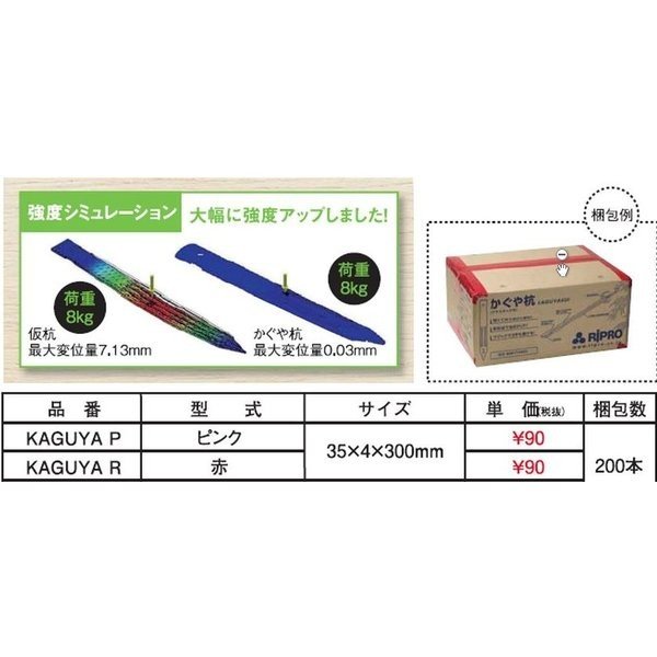 リプロ かぐや杭 (200本入) 35×4×300mm (ピンク/赤)【測量/土地家屋調査/プラスチック境界杭/地籍調査/仮杭/境界杭】