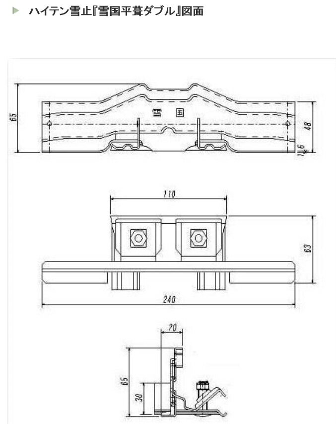 横葺き成型のトタン屋根に使用する雪止めです。ダブルで止めるので強度があります。