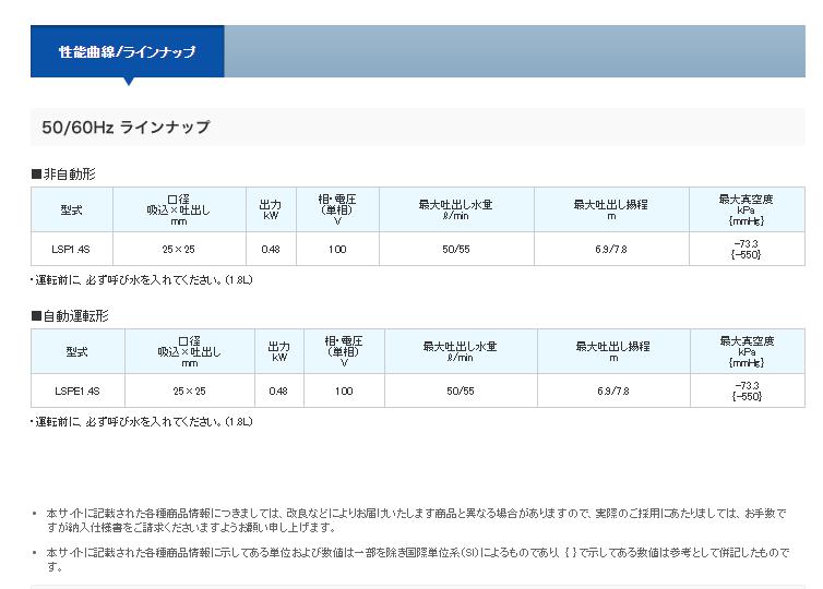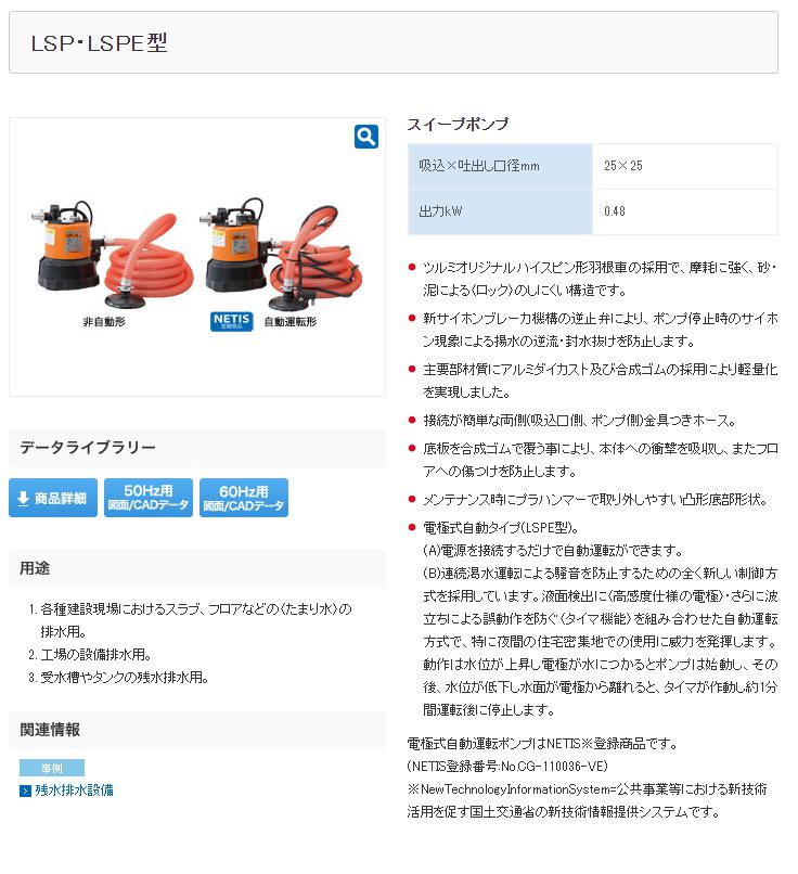◇ツルミ製作所 低水位残水用水中ポンプ(自動型) LSPE1.4S-51 50HZ(東日本用) ※周波数は50Hzとなります。60Hzの地域では使用不可。 ※代引不可