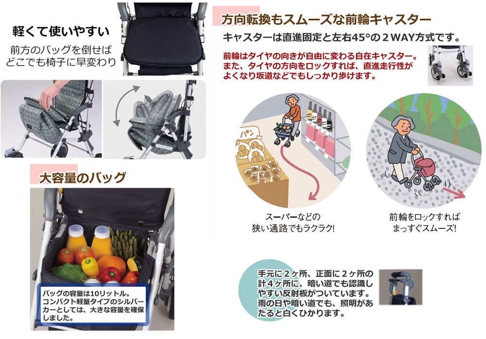 スルーンボックスSP,CB-15BK 【商品説明】 ●10?の大型バッグ付き+座り心地抜群の厚さ3cmクッションのシルバーカー ●段差スルー機能搭載(段差乗り越え機能) ●どこでも椅子に早変わり ●ハンドブレーキ・駐車ブレーキ付き ●杖・ステッキなどを固定するホルダー付き ●背面に小物入れネット付き ●防水加工生地 ●折りたたみ式 ●タイプ:コンパクト ●カラー:ブラック ●サイズ:サイズ:幅42.6(42.6)×奥行55.7(31)×高さ80〜100(73.7〜93.7)cm ※( )は折りたたみ時 ●座面:幅26×奥行21.2cm ●座面 広告文責:NO1元気爽快 (042-843-2703)