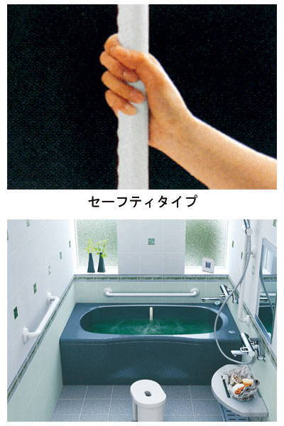 【商品説明】 ●カラーバリエーションも豊富。視認性の高い、濃色も揃っています。 ●セーフティタイプ:ソフトな感触の軟質樹脂を採用。握り部裏面には握りやすく、すべりにくくするための凹凸形状を施しました。 ※アテンションレッド(#P7)の納期は1週間程度かかります。他カラーも注文時期により1週間程度時間がかかる場合もございます。 ※TOTO直送製品は専用路線便となり、通常の運送便とは違いますのでご注意ください。また再配達には別途料金がかかります。 ●サイズ/取付心50cm、直径3.2cm、前出寸法:6.5cm ●材質/握り部:ステンレス鋼・軟質樹脂、カバー・エルボ:樹脂 ●抗菌加工 広告文責:Y-DENTAL ・・・・・