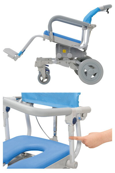 楽チルSAL O型シート 【商品説明】 ●ひじ掛けが前倒れ防止に。シートを傾けて座位を安定。コンパクトなシャワーキャリー。 ●背もたれと座面の角度を保ったまま、座面ごと後ろに倒すことができます。座面にかかる体圧を分散させ、身体のズレを防ぎ、安定した姿勢を保つことが可能です。楽な姿勢で身体が洗えます。 ●ひじ掛けが前に回っているので、利用者が前に倒れるのを防ぐことができます。また、ひじ掛けの前を持つことによって座位保持がしやすくなります。ひじ掛けははね上がるので、乗り降りの邪魔になりません。 ●片足でワンタッチロックができます。ストッパーがついておりますので、より安全にご使用いただけます。 ●前輪キャスターはダブルロック機能付き。 ●サイズ/幅50×奥行98.5(111)×高さ92.5〜98.5(83〜89)cm、座面:幅37×奥行40cm、座面高:45.5〜51.5cm(4段階/2cm)、ひじ掛け高:25cm(※()最大チルト時) ●車輪サイズ/前輪12.7×後輪25.4cm ●重さ/約15kg ●材質/本体:ステンレス・アルミ(粉体塗装仕上げ)、座シート:EVA、背シート:ナイロンメッシュ ●最大使用者体重/100kg ●標準機能/ひじ掛け跳ね上げ、フットレスト着脱、フットブレーキ、チルト、ティッピングバー ●生産国/日本 広告文責:NO1元気爽快 (042-843-2703)