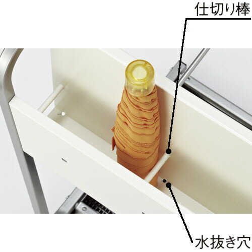 傘立て 【商品説明】 [概要] エントランスをスッキリ見せるスマートなデザイン。折りたたみ傘も収納OK。 [補足説明] ●折りたたみ傘スペース付きのサテンブラックの傘立て。 ●取り出しやすい仕切り棒と水抜き穴で、お客様にも安心の使用感。 [仕様] 収納本数: 長傘:約36本、折りたたみ傘:約9本 寸法: W450×D300×H500mm 重量: 約4.4kg 色: サテンブラック 材質: 本体:スチール(粉体塗装)、滑り止めマット:再生PVC、アジャスター:ポリエチレン 必要工具: プラスドライバー その他仕様: ●アジャスター付●製造国:日本 販売単位: 1台 【商品説明】 [概要] エントランスをスッキリ見せるスマートなデザイン。折りたたみ傘も収納OK。 [補足説明] ●折りたたみ傘スペース付き。取り出しやすい仕切り棒と水抜き穴で、お客様にも安心の使用感。 [仕様] 収納本数: 長傘:約36本、折りたたみ傘:約9本 寸法: W450×D300×H500mm 重量: 4.4kg 色: フレーム:シルバー、パネル:ホワイト 材質: 本体:スチール(粉体塗装)、アジャスター:PE、滑り止めシート:PVC 必要工具: プラスドライバー その他仕様: ●トレー取り外し可能、アジャスター付 販売単位: 1台 広告文責:Y-DENTAL ・・・・・