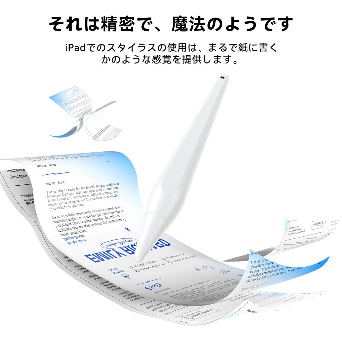 【抜群のコスパ、誰でも手軽に】P6 Pencilは、その抜群のコストパフォーマンスで知られています。私たちは、スマートアクセサリーを選ぶ際に、優れた性能だけでなく、合理的な価格も求める消費者のニーズを深く理解しています。P6 スタイラスペンは、まさにそのニーズを満たすために生まれました。高品質な素材と先進的な技術を持ちながら、非常にお手頃な価格で市場に登場。学生、デザイナー、日常ユーザー問わず、最低限の予算で最高の書き心地を楽しむことができます。私たちは、優れたテクノロジー製品は贅沢品であるべきではないと信じており、P6 タッチペンは「誰でも持てるタッチペン」の理念を実現しています。【超急速充電、12時間連続使用】iPad用ペンはわずか20分でフル充電でき、忙しい日常でもバッテリー切れを心配する必要がありません。一度のフル充電で最大12時間連続使用可能です。短時間の充電で長時間使用可能なため、常に最高のパフォーマンスを維持できます。【傾きを感知、パームリジェクション】パームリジェクションにより、画面に手のひらを置いても誤タッチや干渉が起こりません。傾きを感知により、スタイラスを異なる角度で傾けることで、線の太さやシェーディングのバリエーションを正確に制御できます。【Bluetooth不要、電源オンで即使用】 iPad用スタイラスペンはBluetooth接続不要で、電源を入れるだけで使用できます。シンプルな操作で、どこでもすぐに書き込み可能です。急なメモやアイデアを瞬時にキャッチでき、高効率で便利です。【2018-2024年iPad専用ペン】互換性:iPad (第6/7/8/9/10/(A16)11世代)、iPad Pro 11/13インチ(M4) 、iPad Pro 12.9" (第3/4/5/6世代)、iPad Pro 11"、iPad Air 11/13インチ(M2)、iPad Air (第3/4/5世代)、iPad mini (第5/6/7世代)。注:ペンを付くには、iPad自体に磁気吸着機能が必要です。磁気吸着機能対応デバイス:iPad Pro 12.9”(第3/4/5/6世代); iPad Pro 11”(全ての世代); iPad mini(第5/6世代); iPad air(第4/5/6世代)。磁気吸着機能非対応: iPad Pro 13/11 inch(M4)、iPad Air 13/11 inch(M2/M3)、iPad第6/7/8/9/10/11世代、iPad Air第3世代、iPad Mini第7世代。注:本製品は筆圧機能がありません。市場で販売されているすべてのサードパーティ製アップルペンは、この機能を持っていない。
