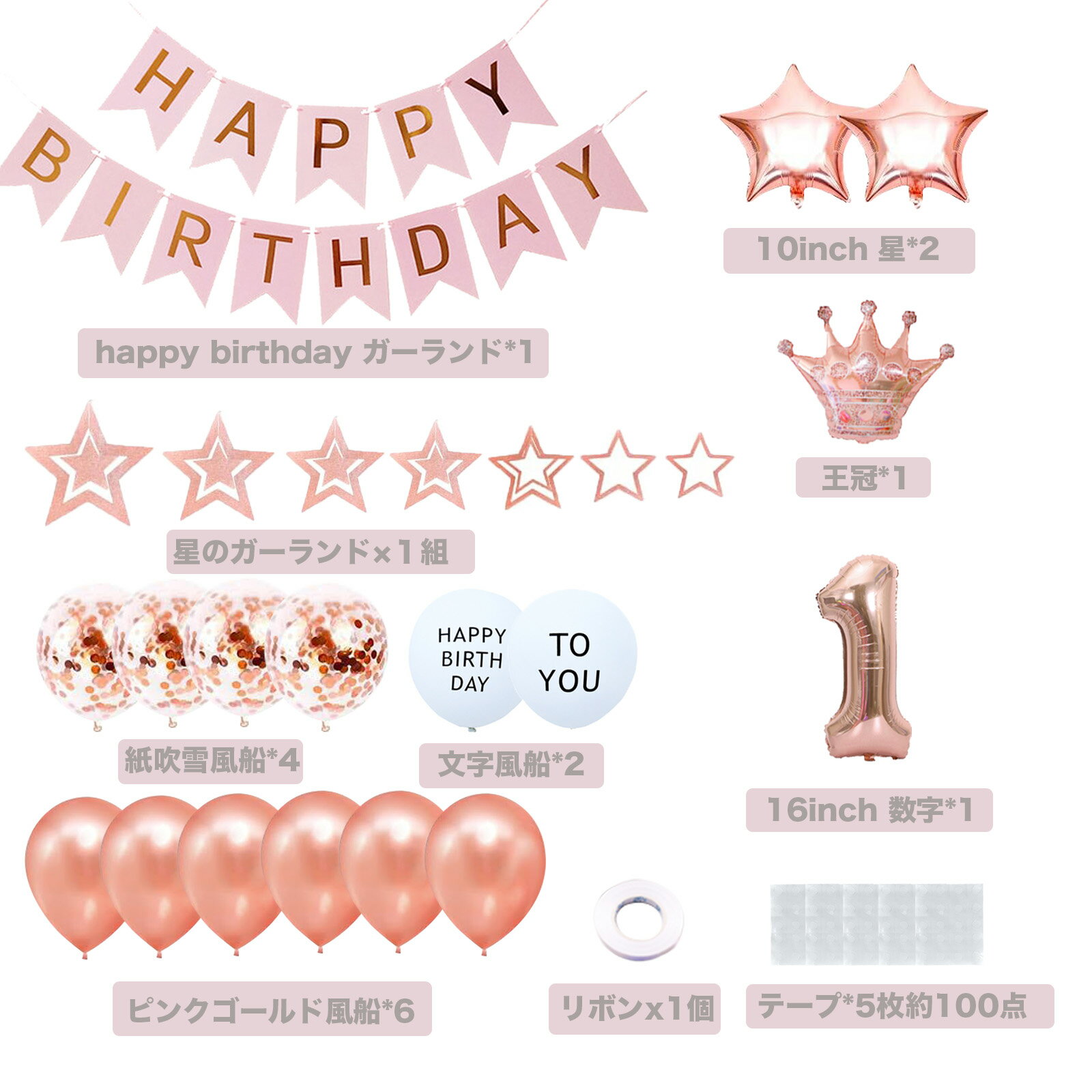 誕生日 バルーン 100日 1歳 2歳 3歳百日お祝い バースデー 飾り付け 風船 HAPPY BIRTHDAY お食い初め ガーランド 紙吹雪風船 パーティー お祝い 記念日 サプライズ 王冠 男の子 女の子 子供 かざりつけ ピンク