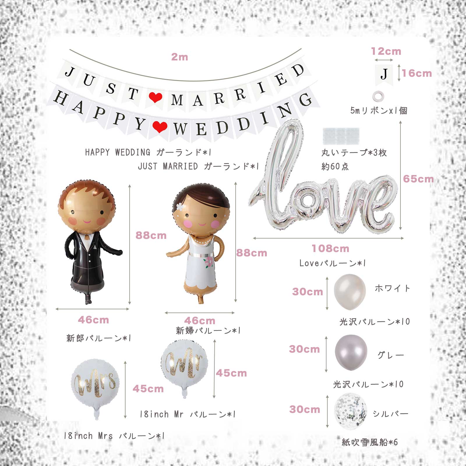 お客様のご要望でバルーンスタンド2個セット新登場! 高さ約70cmで風船付けると100cm前後なります。 4歳児とほぼ同じ大きさ! ハサミでスティックをカットして高さも調節可能なります。 繰り返し使用可能! ヘリウムガスが無くても工具不要で設置可能なります。 ご自身での組み立てで(所要時間10-20分) おしゃれ で シンプル な ボリューム感 満点バルーンセット!結婚式や二次会を華やかに彩る「HAPPY WEDDING JUST MARRIED」新郎新婦 ペア LOVE バルーンセット。 オシャレなピンクゴールドカラーが特徴で、場を一層特別な雰囲気に演出します。 簡単設置で、誰でも手軽にデコレーションが可能です。 さらに、シルバーのオリジナル紙吹雪風船も付属しており、大切な日をさらに華やかに飾ることができます。 結婚式のメインテーブルの背景や入場口の装飾に最適。 文字バルーンには「JUST MARRIED」と明るくポジティブなメッセージが込められており、写真撮影の背景としても絶好のチョイスです。 ゲストを迎える特別な空間を演出し、記憶に残る美しい瞬間を創出します。大切な一日を、このバルーンで一層輝かせましょう。 セット内容: HAPPY WEDDING x1セット JUST MARREDガーランドx1セット ホワイトバルーンx10個 グレーカラーバルーンx10個 シルバーオリジナル紙吹き雪バルーンx6個 LOVEシルバーバルーンx1セット MR&MRSバルーンx2個 【アルミ風船を膨らませる方法】 1.こちらの穴から、ガスや空気を入れていきます。 2.ストローを入れる場合は、ゆっくりストローをまわしながら入れます。 3.あとは、バルーンを押さえながらプッシュを繰り返し空気を入れていきます。 4.ストローを外し、封をつまんで閉じます。 【アルミバルーン貼り付け方法】 風船用両面テープの一部を切り取ります 。 2.両面テープを取ります 。 3.両面テープを1面まで(に)風船の上でくっつきます 。 4.また風船を壁の上で貼ります。 【注意事項】 ・アルミバルーンは弁のついた空気口にストローを差し込み、膨らませてください。(商品説目写真を参考してください。) ・フォトプロップスは、同梱されいてるストローに粘着テープで貼り付けてご使用ください。(ストローは予備が含まれています。)