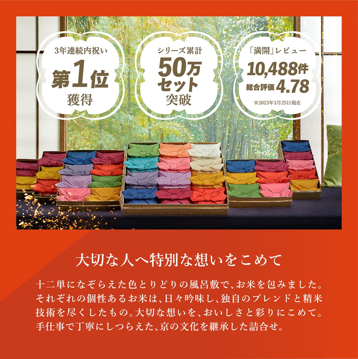 【価格別で選ぶ】 祝い事に 内祝い 内祝 出産内祝い 出産内祝 結婚内祝い 結婚内祝 結婚祝い 結婚祝 結婚式 ご祝儀 御祝儀 お返し 御返し おかえし 引き出物 引出物 お返しギフト 新築祝い 新築祝 快気祝い 快気祝 開店祝い 開店祝 引っ越し祝い 引越し祝い 退職祝い 退職祝 合格祝い 合格祝 昇進祝い 昇進祝 昇格祝い 昇格祝 進学内祝い 進学内祝 成人内祝 成人内祝い 成人式内祝 成人式内祝い 成人祝 成人祝い 御成人御祝 卒業祝い 卒業祝 御卒業御祝 入学祝い 入学祝 入学内祝い 入学内祝 小学校 中学校 高校 大学 就職内祝い 就職内祝 就職祝い 就職祝 入園内祝い 入園内祝 入園祝い 入園祝 御入園御祝 お祝い 御祝い 御祝 金婚式御祝 銀婚式御祝 御新築祝 新築御祝 新築内祝い 新築内祝 祝御新築 七五三祝い 七五三内祝い 七五三内祝 七五三御祝 753 初節句祝い 初節句内祝い 初節句内祝 初節句御祝 初節句 男の子 女の子 節句 誕生日 手土産 御礼の品 お礼の品 差し入れ ご進物 芸能人御用達 インスタ おしゃれ 喜ばれる もらって嬉しい ハイセンス センスのいい グルメ ギフト ギフトセット プレゼント 食べ比べ 高級 名入れ 日持ち 個包装 ファミリー 両親 祖父母 祖父 祖母 おじいちゃん おばあちゃん 義両親 義父母 兄弟 姉 義理 親戚 身内 親族 上司 同僚 友人 季節のご挨拶に 御年賀 お年賀 御年始 お年始 バレンタイン ホワイトデー 桃の節句 端午の節句 母の日 父の日 初盆 お盆 御中元 お中元 暑中御見舞い 暑中見舞い 残暑御見舞い 残暑見舞い 寒中御見舞い 寒中見舞い 敬老の日 お歳暮 御歳暮 長寿のお祝いに 60歳 61歳 還暦祝い 70歳 古希祝い 77歳 喜寿祝い 80歳 傘寿祝い 88歳 米寿祝い 90歳 卒寿祝い 99歳 白寿祝い 100歳 百寿祝い 108歳 茶寿祝い 111歳 皇寿祝い 120歳 大還暦祝い 法人向けのお祝いに 御開店祝 開店御祝い 開店お祝い 開店祝い 御開業祝 周年記念 お餞別 贈答品 粗品 開院祝い 記念品 成約記念 ノベルティ 販促 弔い事に 香典返し 香典 お返し 御供 お供え物 粗供養 御仏前 御佛前 御霊前 法要 仏事 お盆 初盆 新盆 新盆見舞い 彼岸 お彼岸 喪中見舞い 法事 ほうじ 法事引き出物 法事引出物 弔事 法要引出物 年回忌法要 一周忌 三回忌 七回忌 十三回忌 忌明 十七回忌 二十三回忌 二十七回忌 三十三回忌 満中陰志 会葬御礼 茶の子 御淋見舞 四十九日 熨斗 のし内 容 詳 細 サイズ 19×13×8cm 全体総重量 750g (うち、お米の量は600g) 商品内容(お米) 十二単シリーズ2合×2個入り(極、結) お米の産地 こちらからご確認ください。 お米の品種・割合 別途ラベルに記載。精米日は、注文を受けてからの精米となりますためラベルに記載しております。 パッケージ内容等 色とりどりの風呂敷×2、化粧箱※パッケージデザインが変更になる場合がございます。 賞味期限(お米) 精米年月日より45日間 内 容 詳 細 熨斗(のし)和風メッセージカード(縦14.5cm×横5.5cm)命名札(出産内祝用) 無料対応商品1点につき、1枚。 選べる箱色 対応しております。黒,金の各箱からひとつお選びいただけます。 内 容 詳 細 手提げ袋 「金」「茶」をご用意いたしております。(1点200円(税込))