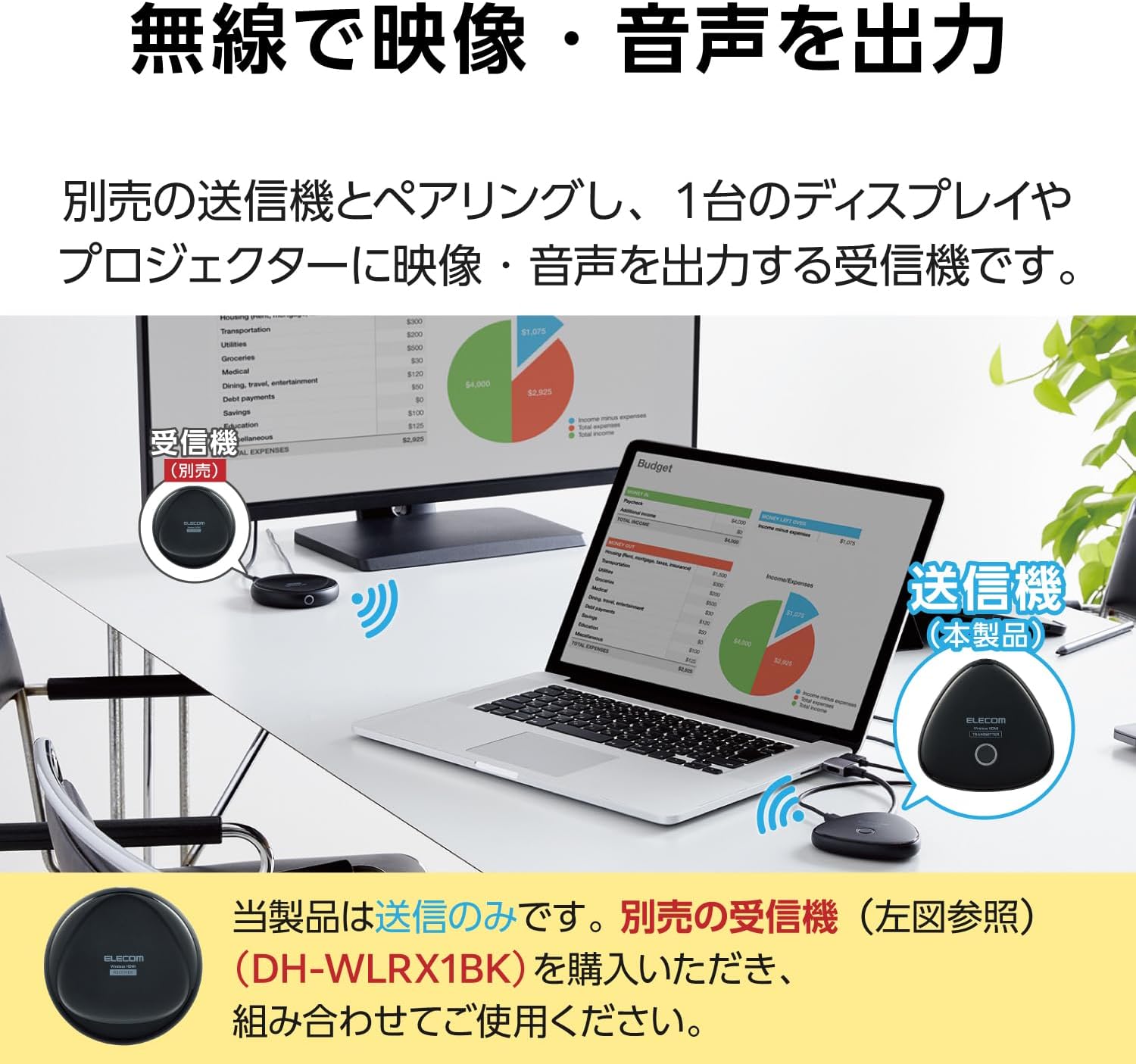 エレコム ワイヤレスhdmi 送信機 エクステンダー 無線 4K(3840×2160)30Hz トランスミッター 最大伝送距離:15m サビや劣化に強い金メッキ加工 DH-WLTXHM1BK