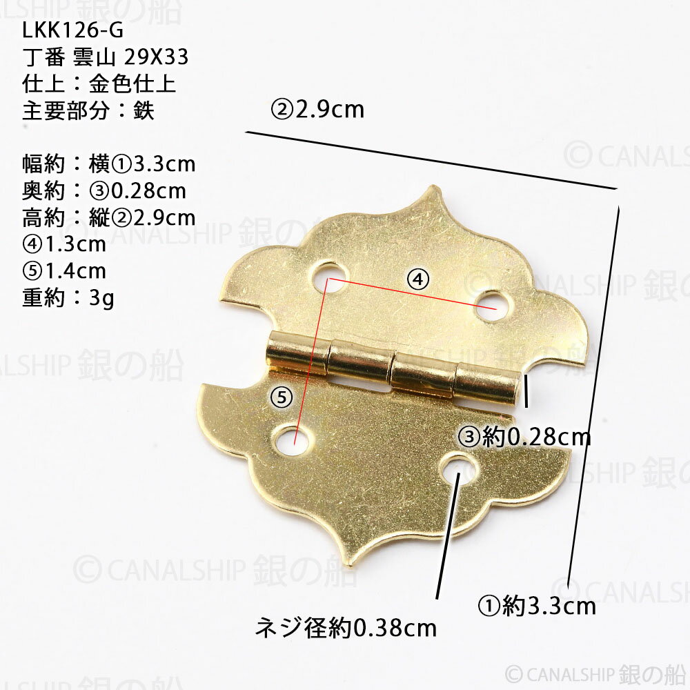 蝶板 ちょうばん ヒンジ 家具金物 ミニチュア 小箱金物 ゴールド 金色 (ヒンジ 丁番 山雲 縦29x横33 4H 真鍮色)(LKK126-G)【RCP】【asu】【P】
