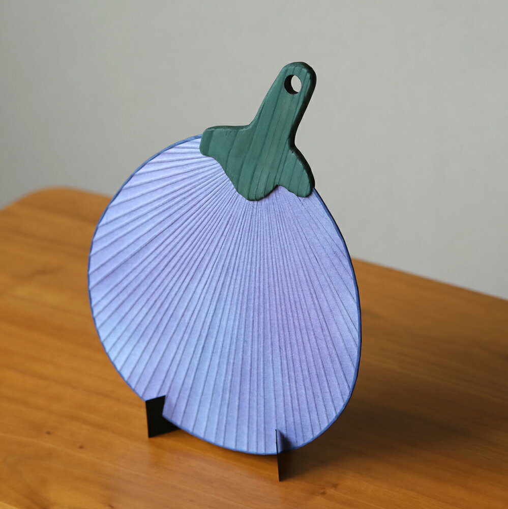 インパクト大!お部屋のアクセントに和紙独特の色染で京やさいの瑞々しさを表現したユニークな「やさいうちわ」。天然杉で作られた柄の部分にも細部まで見事にその形が再現されています。見た目にも爽やかで、インパクトがあり、インテリアにもぴったり。普段の暮らしの中で、気軽に飾って使える京うちわです。「扇いで涼しい、飾って楽しい」をコンセプトに生まれた京うちわ京うちわは柄と中骨が一体でない構造で、扇面が非常にフラットです。そのため上絵を豊かに表現でき、装飾品としても親しまれてきました。その特徴を生かし、京都で1944年以来、京うちわを作り続けている塩見団扇。伝統とモダンを追求し、現代の生活になじむような「扇いで涼しい、飾って楽しい」京うちわが誕生しました。3種類の京やさい。好きな色?好きな野菜?どれを選ぶ?瑞々しく涼やかな加茂なす、土の色味が鮮やかな鹿ヶ谷かぼちゃ、ふくよかな丸みがかわいい聖護院かぶら。自分の好きな京やさいで選ぼうか、インテリアに合う色で選ぼうか、色々想像しながら迷うのも楽しいですね。楽しみ方いろいろ。ディスプレイにもノベルティにもサイズはA4より少し大きい程度。壁掛け用の穴が持ち手にあり、押しピンひとつで飾れます。裏面は白和紙でお店の名前やメニューも印刷できるのでノベルティやオリジナルグッズにも最適。厚紙製のうちわスタンド付きで紙製パッケージに入れてお送りしますので、贈り物にもおすすめです。サイズ:タテ25-28×ヨコ18-23cm重量:35-41g材質:和紙、竹、杉生産国:日本その他:箱無し、専用袋あり関連キーワード:うちわ 団扇 京うちわ 京やさい 和紙 和風 和柄 北欧柄 和モダン おしゃれ かわいい かっこいい コンパクト 軽量 壁掛け インテリア 贈り物 お土産 海外 プレゼント 開店祝い made in jpan 日本製 塩見団扇 ノベルティ➡この商品を見ている人はこちらもチェック