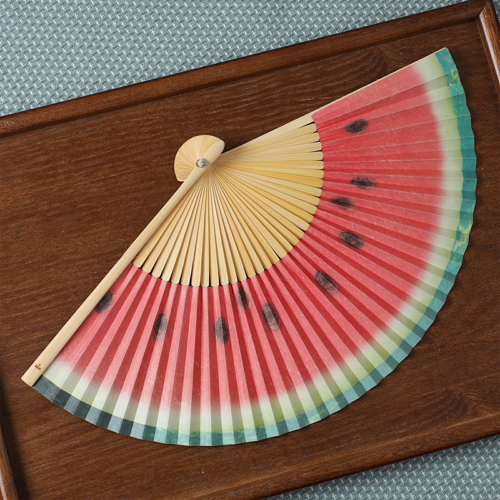 扇子 レディース かわいい おしゃれ 女性用 スイカ スイカ柄の扇子 紙扇子 西川庄六商店 ユニーク 誕生日 プレゼント 夏 ギフト フルーツ すいか 西瓜 おもしろい 個性的 香り付き 桐箱入り 母の日 ギフト 母親 お母さん 娘 ネーム入れ