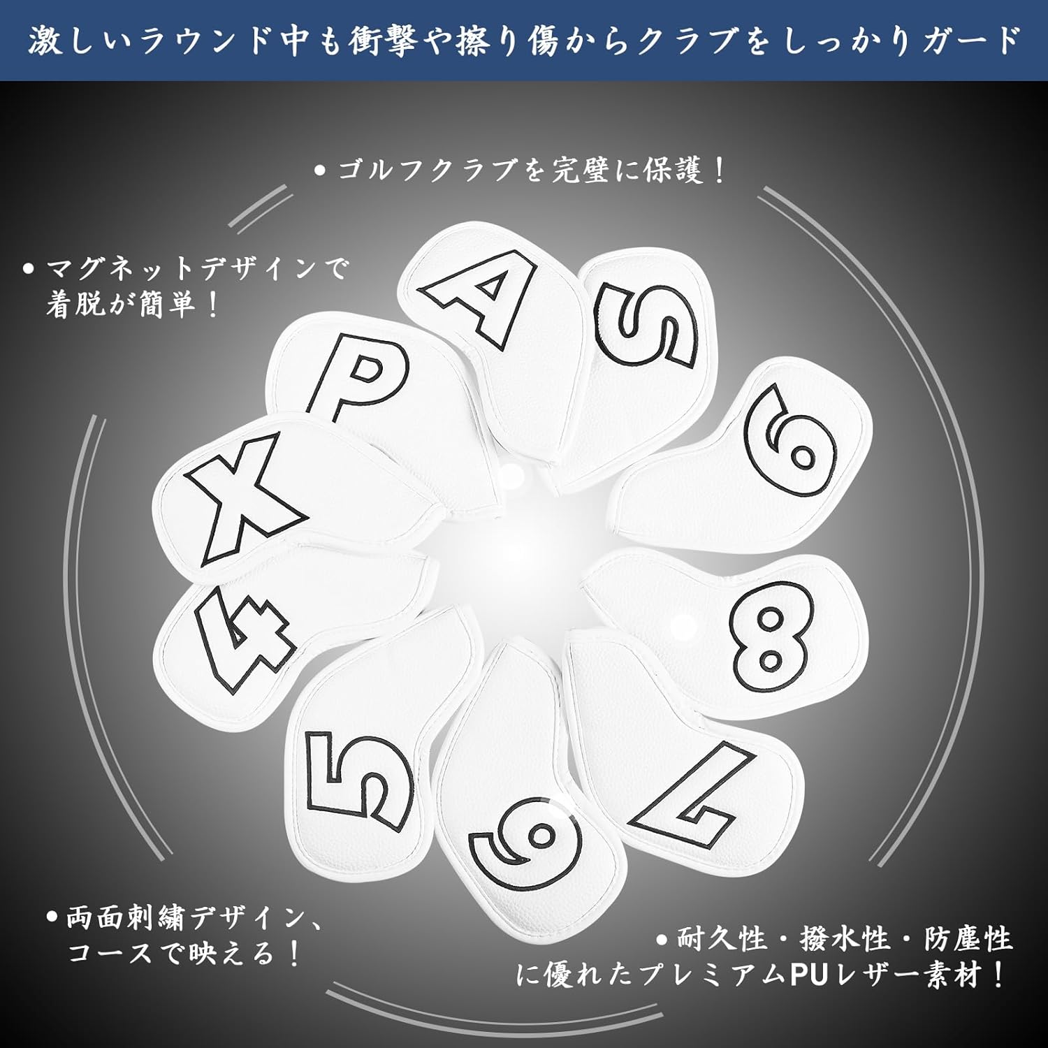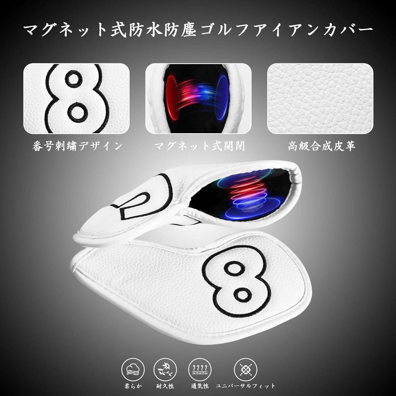 ゴルフアイアンカバー 10枚セット マグネット式開閉 ゴルフヘッドカバー ウェッジカバー 高級PUレザー 軽量 耐久性・撥水性・防塵性・耐摩耗 両面番号刺繍 究極のヘッド保護カバー