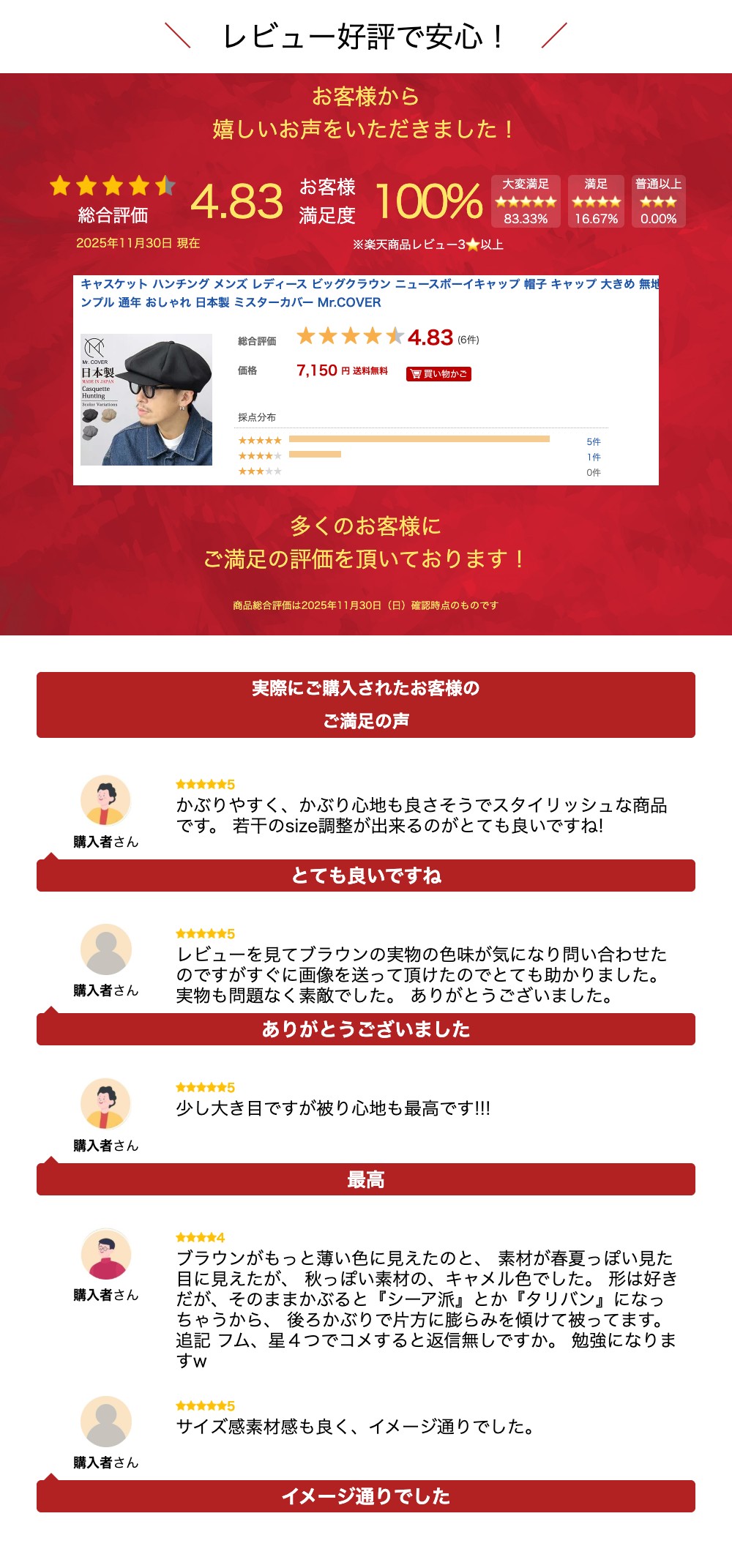 キャスケット ハンチング メンズ レディース ビッグクラウン ニュースボーイキャップ 帽子 キャップ 大きめ 無地 シンプル 通年 おしゃれ 日本製 ミスターカバー Mr.COVER