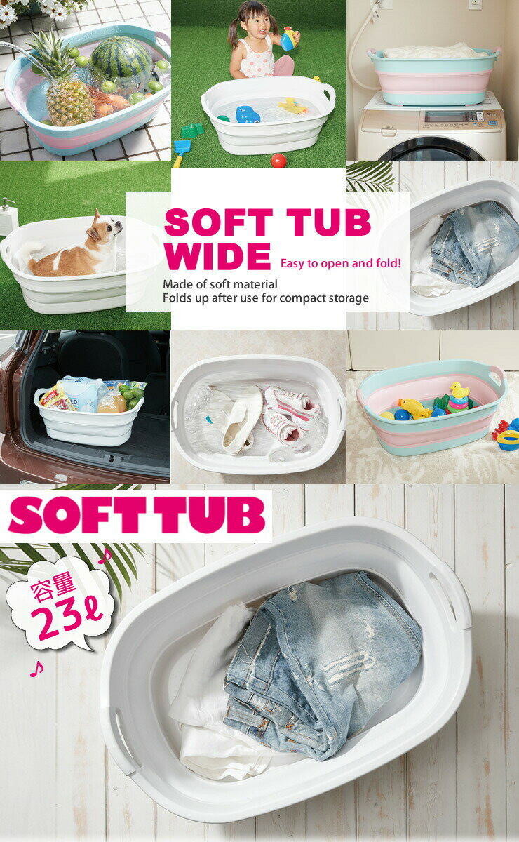 日本製 ソフトタブ ワイド 折りたたみ 23L SOFT TUB 折り畳みたらい[伊勢藤]つけおき洗い 防災 バスタブ 水遊び ペットバス 大型バケツ 洗濯 水遊び ペット 野菜洗い ワイン保冷【Glad Life】【ポイント2倍】[PNG02]