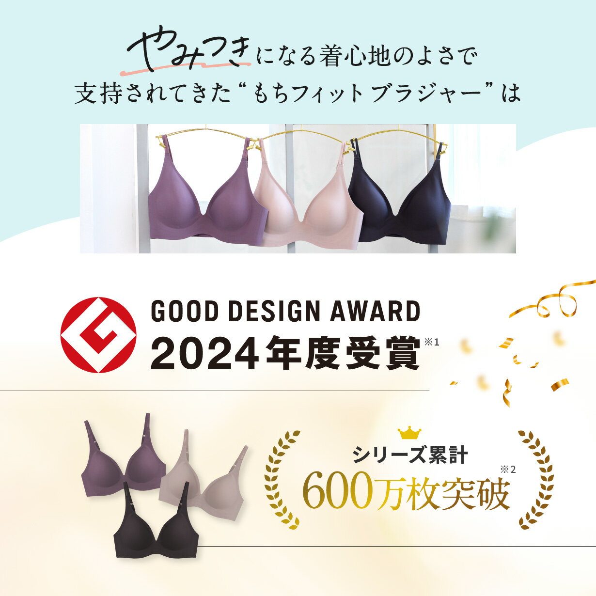 【商品について】 ▼こんな方におすすめ ・キャミソールとブラを重ねるのが面倒に感じる方 ・1枚で快適に過ごせるインナーを探している方 ・ワイヤーやゴムの締め付けが苦手な方 ・自然な丸みとすっきりしたシルエットを求める方 ・デイリーにもお出かけにも使えるブラトップが欲しい方 【商品特徴】 ▼もちフィット ブラトップ キャミソールとブラジャーが一体化した“1枚完結”インナー。 重ね着いらずで、忙しい毎日もストレスフリーに過ごせます。 胸に沿う高密着フィットとジェルパーツでカップの浮きを防止。 動いてもパカパカせず、自然な丸みをキープします。 脇高設計のサポートパネルが脇・背中をすっきり整え、 段差が出にくいなめらかなシルエットへ導きます。 わずか約100gの軽量設計で、肩への負担も軽減。 長時間の仕事やリラックスタイムでも快適さが続きます。 細ストラップとシンプルなデザインで“見せてもきれい”。 背中あきトップスや薄手ニットとも好相性です。 【着用方法】 1:肩紐を両手で持ち、足先から着用していきます。 2:カップ部分まで引き上げたら、左右の肩紐に腕を通します。 3:前かがみになり、アンダーバストや背中、脇のお肉を優しく寄せ集めカップ内におさめます。