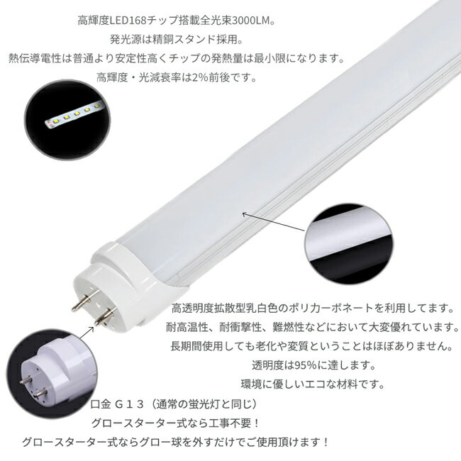 【注意事項 】 ・モニターの発色の具合によ り実際のものと色が異なる場合がございます。 ・色味等に関しましてはPCやスマホ画面にもより若干色味が実物と違う場合がございます。 ・当店利用にあたり初期不良(受領日から7日以内)の対応は当店往復送料負担、 初期不良以降の初期不良連絡、保証期間での故障修理のお客様往復送料ご負担下さい。 商品受領後速やかに商品ご確認下さい。明らかな配送破損が見られる場合はすぐに宅配業者へお申し付け下さい。 ・輸入品の為、製品本体に細かな傷や汚れ、外箱は汚れ・破損・潰れ等がある場合がございます。 ・必ずLED直管形蛍光灯(両側給電)に適合した取付器具へ設置/取付をして下さい。 ・不適合器具への設置/取付は不点灯、蛍光灯/器具の早期故障、火災等の原因になりますのでご注意下さい。 ・ご購入後の取扱い使用/設置につきましてはお客様の自己責任になり当店では一切の責任を負えません。 ・蛍光灯の色温度はメーカー/ロットにより同じ色温度でも発色が違う場合がございます。 ・他商品との色味違い/イメージ違い等の返品交換希望等はお客様都合の返品対応となります。【商品説明】 フリッカーフリー昼光色6500K 25本set LED蛍光灯直管形G13/40W形120cm対応 3000lm 168チップ グロー式工事不要!発光180° 【LED蛍光灯メリット】 従来の蛍光灯の電気代が約1/2に!! 発熱も少ないため夏の空調効果を含めると年間約60%節約になります。 従来の蛍光灯に比べて広範囲に光が広がります 従来の蛍光灯より長寿命-従来の蛍光灯の約4〜8倍長寿命。交換の手間が大幅に減少 素材がガラスではないため、落下しても割れにくく安全。 従来の蛍光灯に見られるチラつきはありません。 LEDの光は赤外線や紫外線を含まないため色あせなども抑えられます。 LEDは水銀を含まないため有害な物質を排出せず、環境に優しい照明です。 フリッカーフリーだから目に優しく、写真撮影にも使えます。 【LED蛍光灯の取り付け/注意点】 グロースターター式 必ずグロー球を取り外してからお使い下さい。 安定器は約4〜6W程度の無駄な電力を消費しますので安定器を外す工事を推奨します。 ※グロー球を外さずにご使用した場合蛍光灯/取付側を一瞬にて破損損傷の可能性がありますのでご注意下さい。 (配線工事は、資格が必要なため電気工事店にご相談下さい) ラビットスター式タイプ、インバーター式タイプ 従来の器具をそのまま使えますが安定器を取り外す直結工事 が必要です。 ※配線工事は、電機工事士資格が必要なため電気工事店にご相談下さい。 お客様でのご判断にて工事等は絶対に行わないで下さい。写真の図面をご参考下さい。 【製品仕様】 メーカー型番:FTT80027電源: 100-240V・50/60Hz消費電力: 23w±1wWLEDタイプ・数:SMD2835 LED168Pc's色温度: 昼光色(6500K)発光角度:180° 演色性:Ra83点灯方式: AC直結 両側給電全光束: 3000lm本体寸法: H32mm×W27.5mm×L1200mm 重量: 約180g パッケージ内容: LED蛍光灯25本 保証期間: 1年