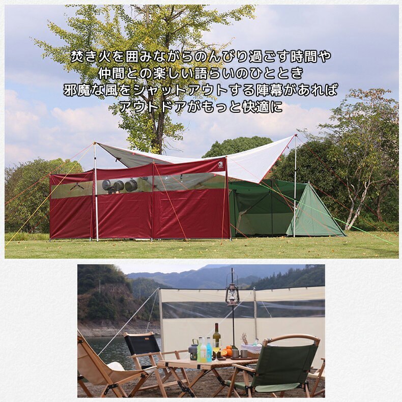ウィンドスクリーン 陣幕 防風 横幕 アウトドアウインドスクリーン パーテーション キャンプ 3面 分割式ポール付き 風よけ 目隠し ワイド 焚き火 風除け 軽量 コンパクト 撥水 収納ケース付 風防 焚火陣幕 選べる3カラー